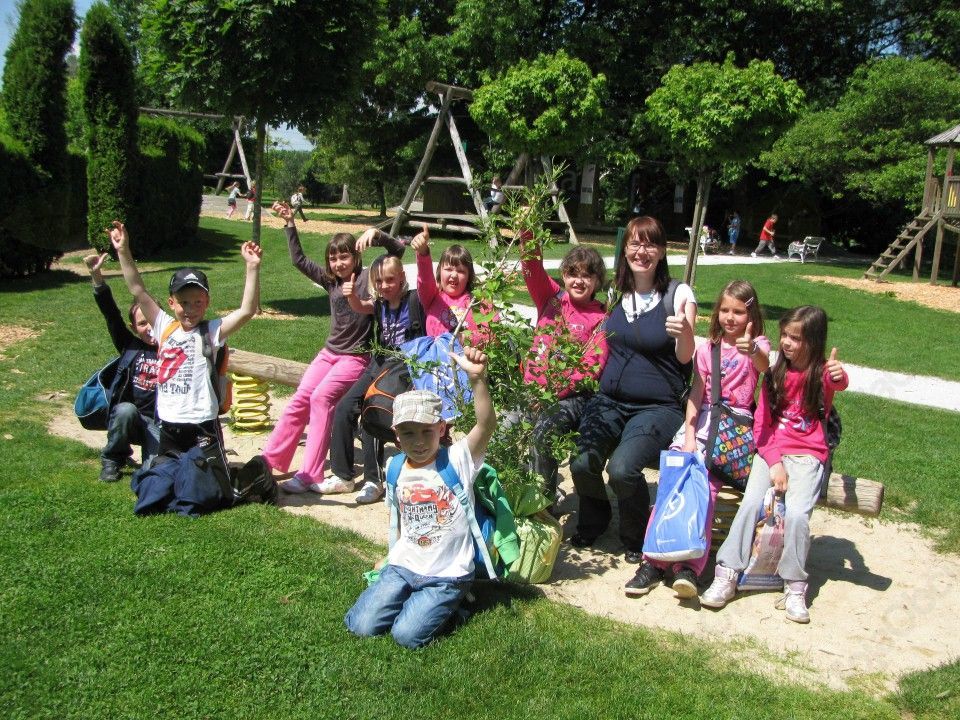 30. 5. 2012 smo se odpravili po nagrade v Arboretum Volčji Potok, kjer smo preživeli lepo dopoldne. Najprej smo si ogledali razstavo pošastno velikih žuželk in izumrlih morskih velikanov. Nato smo z organizatorji odšli v tamkajšnji gozdiček, kjer smo nabrali vejice, storže in zeleno podrastje. Iz pripravljenega materiala smo na tleh izdelali velike mandale. Sledila je razglasitev zmagovalcev in podelitev nagrad. Poleg številnih majhnih daril smo prejeli tudi sadiko drevesa ginko, ki ga bomo v naslednjih dneh posadili v okolici šole. Obisk v Arboretumu smo na koncu izkoristili še za ogled razstav metuljev, orhidej ter kaktusov. Pika na i je bil sladoled, ki nam je vswem zelo prijal.