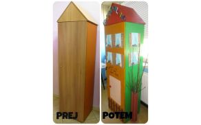 Osnova za našo »izmenjevalnico« je bila omara, ki smo jo oblikovali v hišo, jo pisano porisali in okrasili. »Izmenjevalnico« bomo postavili v avlo naše šole. Namenjena je učencem, ki bodo vanjo lahko prinesli kakšen predmet, igračo, knjigo ali družabno igro, odnesli pa bodo lahko kakšen drug predmet.