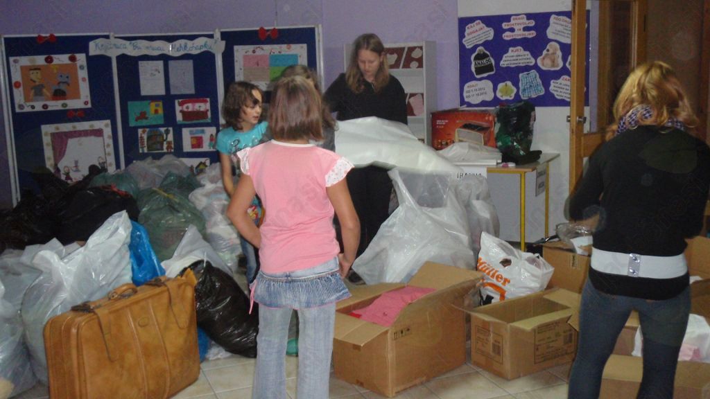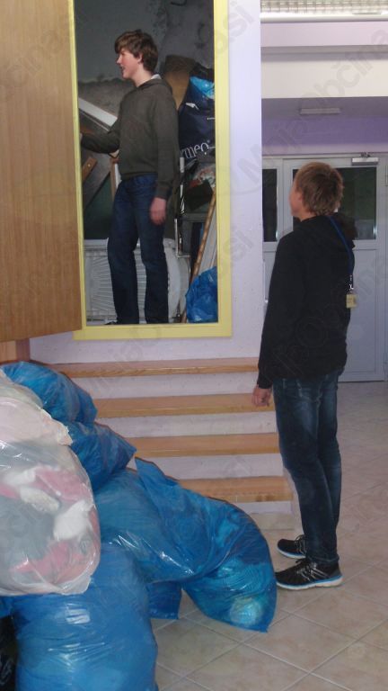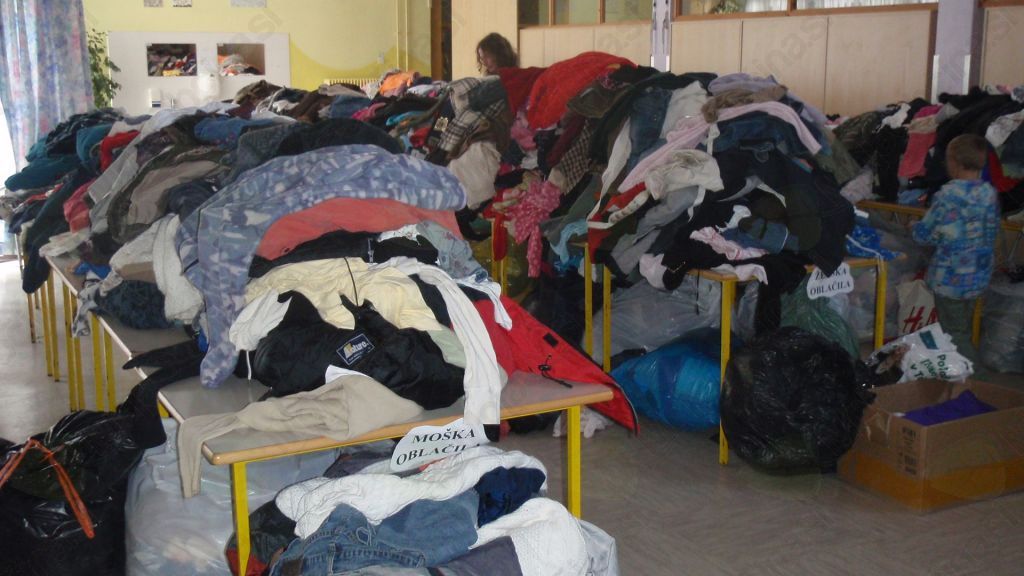 Naši prostovoljčki so vsak dan pridno pomagali pri sortiranju in shranjevanju zbranih reči in tako je bilo tudi na dan zaključka zbiralne akcije. Jedilnica šole na Vranskem je ob veliki količini zbranih reči kar naenkrat postala premajhna. Da bi ljudem, ki so prišli, olajšali delo, so učenci pripravili kotičke z napisi za lažje iskanje. Imeli smo kotiček ženskih oblačil, moških oblačil, otroških oblačil, igrač, čevljev, posode, spominkov in posteljnine.