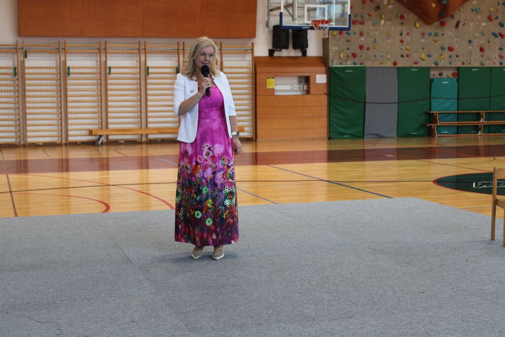 Zbrane je pozdravila tudi ravnateljica Polona Vodičar. S toplimi besedami je prvošolcem in njihovim staršem vlila pogum, narisala nasmehe na obraze ter predstavila učiteljice, ki bodo spremljale naše najmlajše učence: razredničarki Adrijano Dečman (1. a) in Natašo Pečovnik (1. b), strokovno delavko Majo Jerman ter učiteljico programa RAP Bredo Čvan.