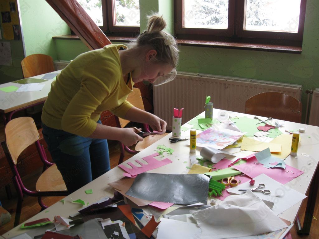 Najprej smo se učenci 7. a-razreda odpravili v učilnico tehnike in tehnologije, učenci 7. b pa v učilnico likovne vzgoje. Delali smo različne izdelke iz različnih materialov. V 7. a smo okraševali steklenice z volno in košarice iz papirja. Učenci 7. b so izdelovali glave velikonočnih zajčkov iz balonov in papirnatih brisačk, nato so balon še skaširali s papirnatimi brisačkami. Izdelovali so tudi zajčke in kokoši iz rolic, ki so jih oblepili z barvnim papirjem.