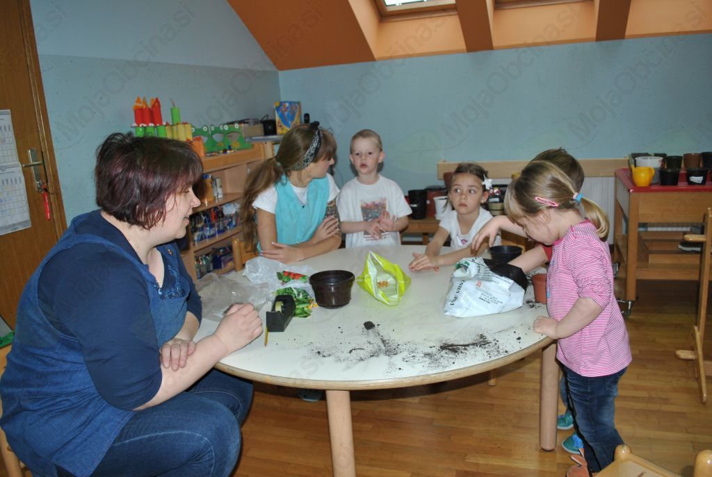 22. aprila smo v vrtcu praznovali dan Zemlje. Najprej smo v igralnicah pripravili poučne ter zabavne ekodelavnice. Ločevali smo odpadke, prebirali knjige o ekologiji, igrali eko družabne igre, reševali delovne liste, preskakovali vrbove veje, kegljali z odpadno embalažo, ciljali z zamaški, konstruirali smo s kockami in tulci, risali s prstki po pšeničnem zdrobu, se rokovali z zemljo ter sejali semena. Po kratki malici pa smo se odpravili na igrišče, kjer smo pripravili različne poligone iz naravnih materialov ter uredili vrtičke v gumah. Preživeli smo razgiban in poučen dan.