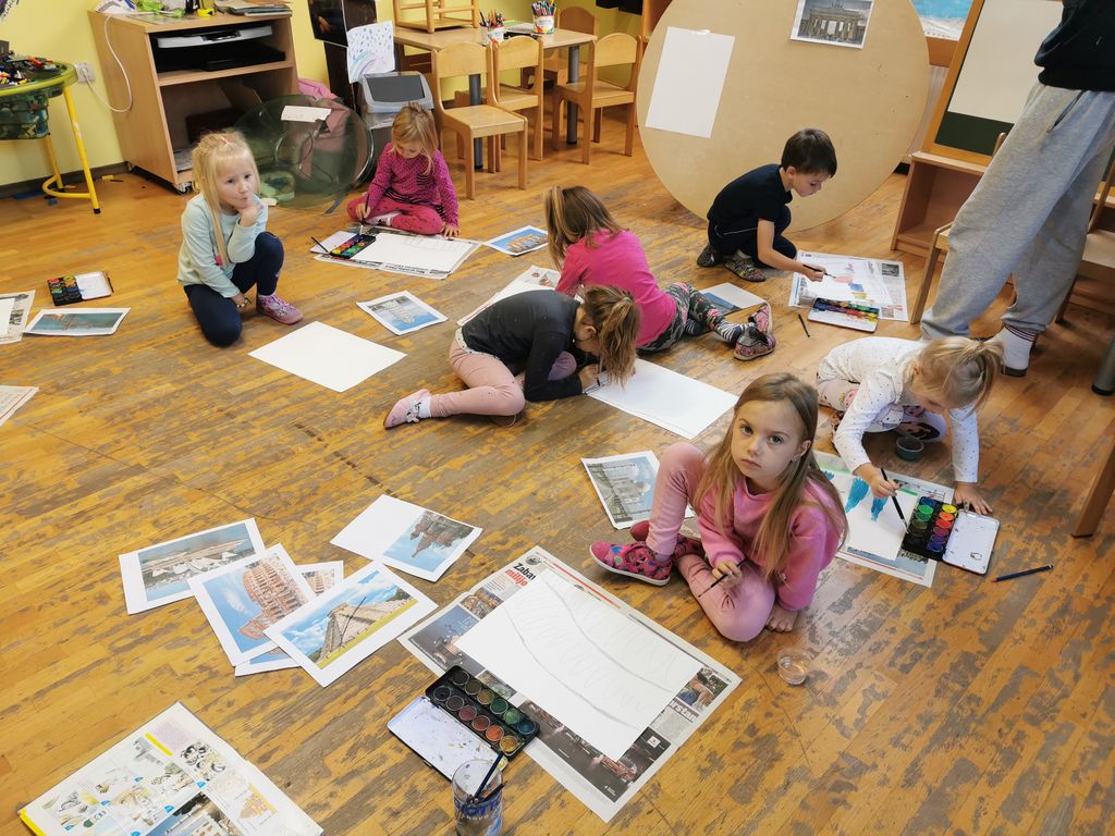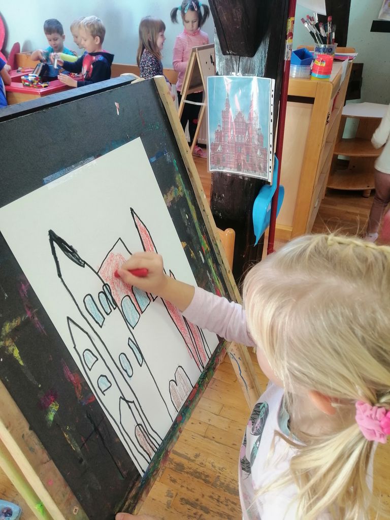Otroci so v vseh oddelkih ustvarjali različne stavbe, jih opazovali, se o njih pogovarjali ter poustvarjali. V okviru natečaja vseslovenskega dneva habitata – ''Barva v arhitekturi'' so nastala raznolika likovna dela otrok, ki v vrtcu bogatijo igralnice.