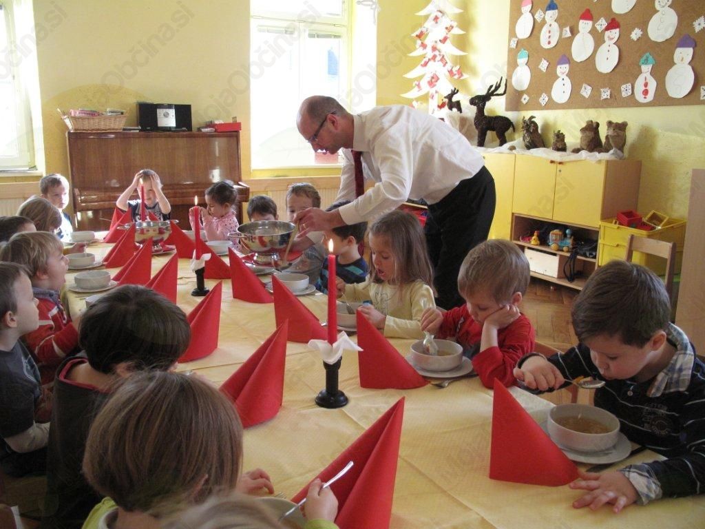 V predprazničnih dneh smo si v naši skupini pričarali pravi čarobni dan, ki se je pričel že dopoldne, saj smo imeli slavnostno kosilo, ki nam ga je s pravljično dekoracijo postregel g. Martin Slapnik. Otroci so bili navdušeni, saj je bilo kosilo res nekaj posebnega.