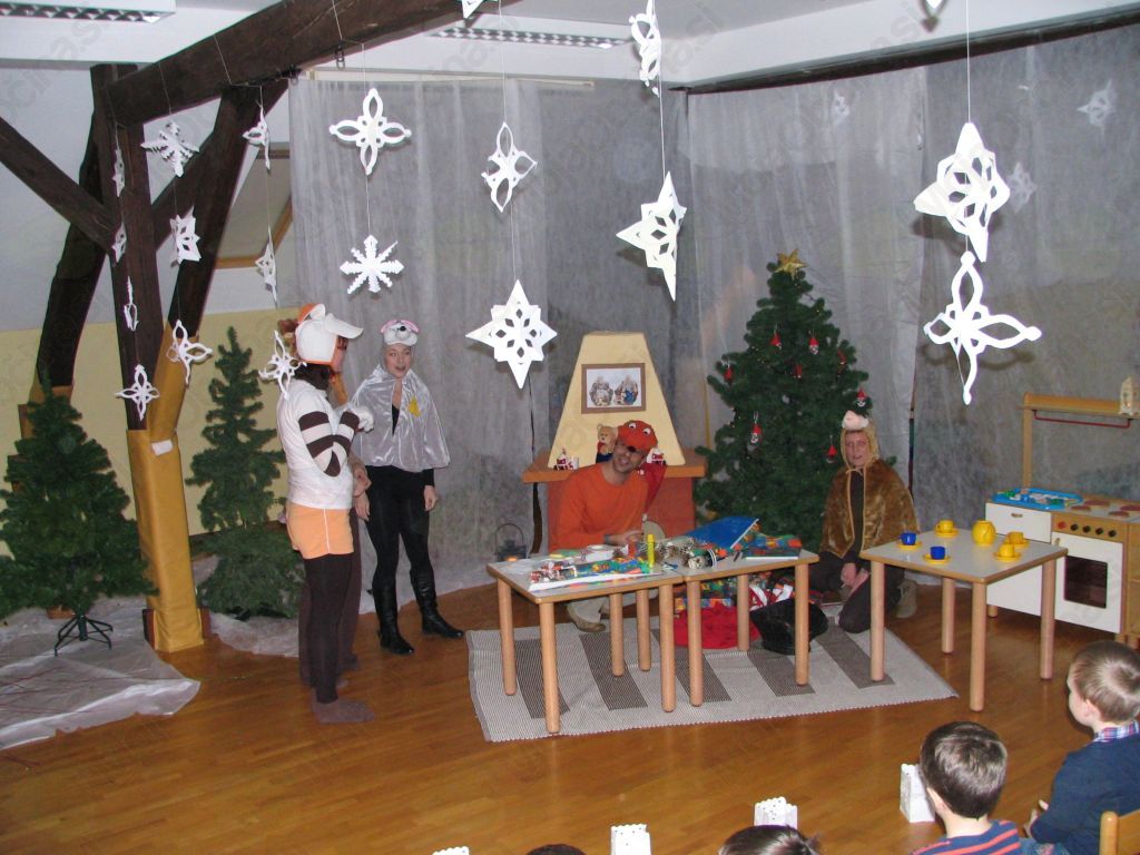 Popoldne pa so starši svojim otrokom zaigrali igrico NEKE BOŽIČNE NOČI. To je bilo za otroke posebno presenečenje. Iskrice v otroških očeh so najlepše plačilo za vse. Hvala staršem za izvedbo igrice. Po igrici smo se okrepčali s čajem in malo poklepetali.