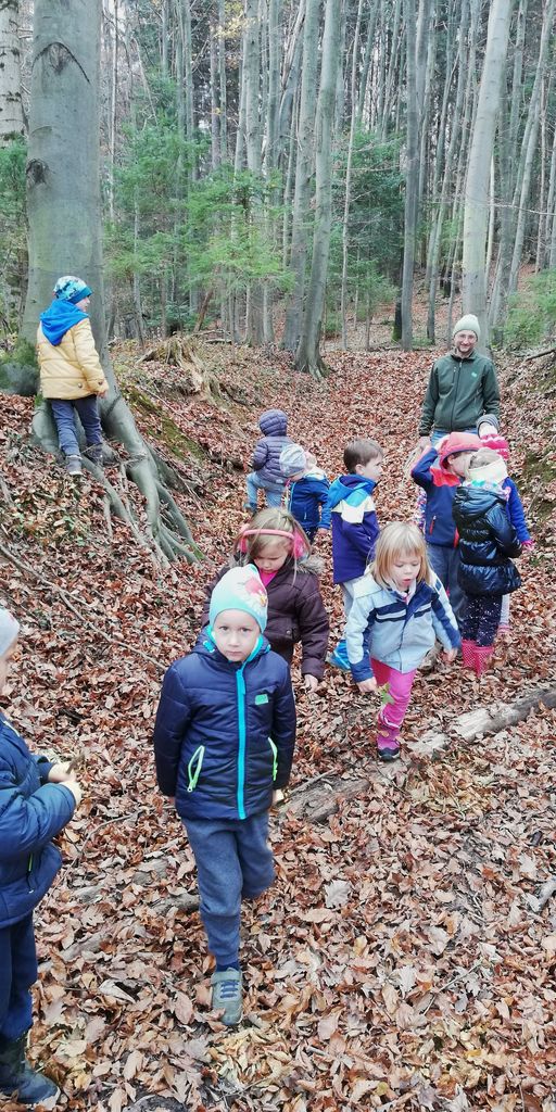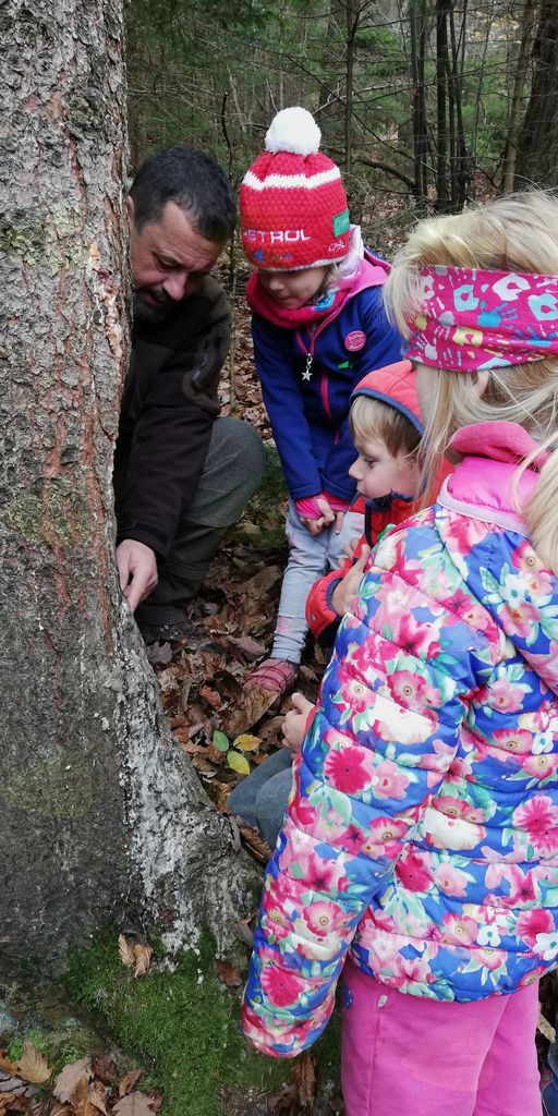 Nasmejanih obrazov smo se vrnili v vrtec. Malo smo bili pa tudi lačni in žejni, zato smo se dogovorili, da naslednjič vzamemo s sabo še malico, ker od smole in bukovega žira se pač ne da najesti.