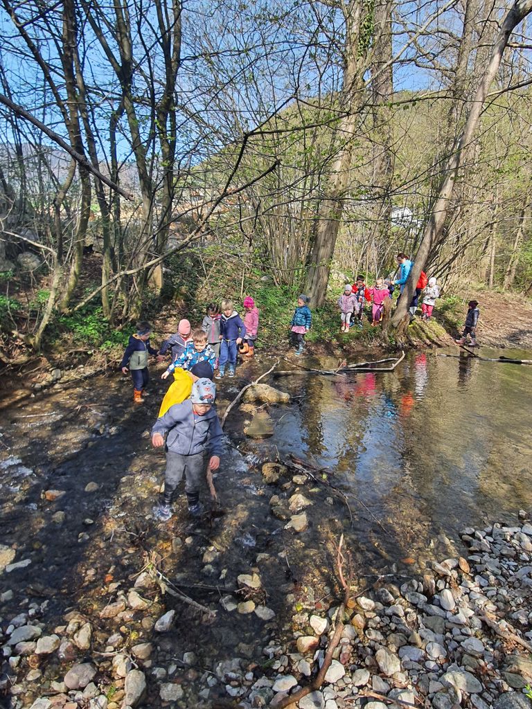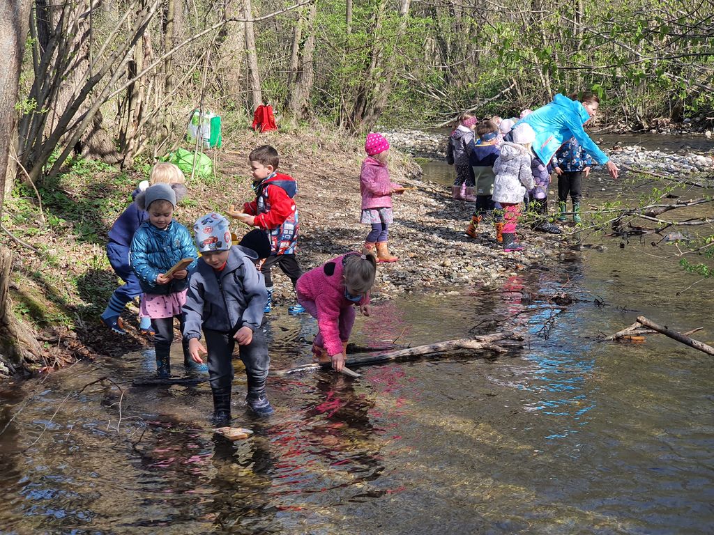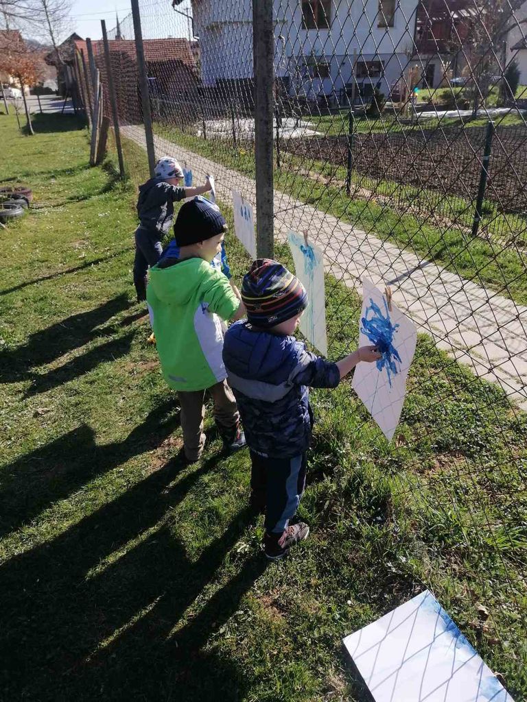 Ves mesec april smo z otroki v oddelku 3-4 raziskovali potovanje vodne kapljice. Seznanjali smo se z različnimi padavinami in spoznavali lastnosti vode. Iskali smo potočke v bližnji okolici. Dobro smo spoznali strugo potokov Merinščica in Podgrajščica.