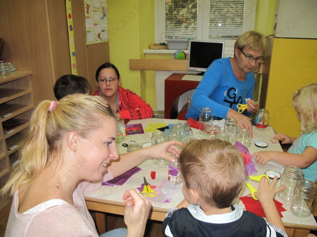 Le katere štiri obleke so to? Letni časi! Prav ti so bili rdeča nit letošnjega dogajanja na jesenskem srečanju v vrtcu Vransko. Pri vhodu nas je pričakala čutna pot, kjer smo tipali led, zemljo, koruzo, hodili po kamenju, stiroporu, mivki in vonjali različna zelišča. Nato smo se razkropili po igralnicah, ki so predstavljale vsaka en letni čas. Pri pomladi smo izdelovali možice, ki smo jim posejali žito na vrhu glave, da bodo imeli lepo frizuro. Poletje nas je razveselilo z vodo. Igrali smo se v bazenčku in prelivali vodo v posode. Jesen je bila najbolj aktualna, saj smo stiskali sok iz grozdja na eni stiskalnici in sok jabolk na drugi stiskalnici. Letina je bila dobra, saj smo se vsi dobro odžejali. Na tem mestu se želimo zahvaliti vsem staršem in otrokom, ki so tako pridno prinesli jabolka in grozdje v vrtec. Hvala. Ostala nam je še zima, kjer smo izdelovali krasne lučke iz kozarcev s čajno svečko, ki so jih otroci odnesli domov in si obsvetili pot. Na koncu pa nas je čakalo še sladko presenečenje, saj se nam je odprla dežela palačink z domačimi marmeladami. Ko smo se vsi posladkali s palačinkami, napili sladkega soka, naredili možice in se poigrali z vodo, smo ponosni odšli domov, s prižgano lučko v roki, da nam je osvetljevala pot.