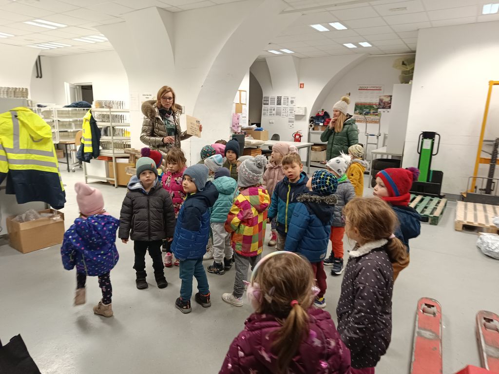 V raziskovanje poklicev smo vključili tudi lokalno skupnost. Obiskali smo turistično informatorko (go. Tanjo) v Schwentnerjevi hiši, kjer smo si hkrati ogledali še našo razstavo, ter knjižničarko (go. Valerijo) v Občinski knjižnici Vransko, ki nam je nazorno predstavila svoj poklic. Prijateljem iz vrtca Tabor smo želeli poslati pismo, zato smo se oglasili tudi na Pošti 3305 Vransko. Upravnica pošte (ga. Polona) je naše pismo pri okencu najprej sprejela, nato pa smo ga skupaj odnesli do prostora za pismonoše in ga usmerili v točno določen predalček v potovniku.