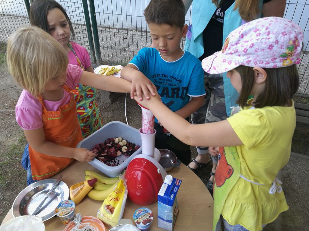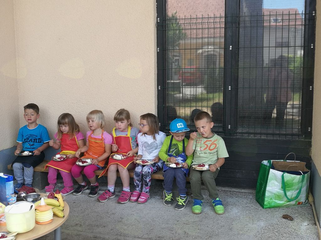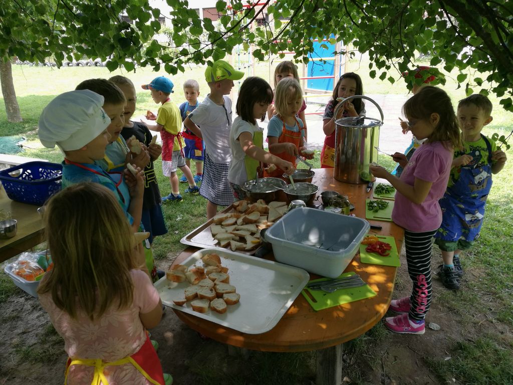 Bilo je tudi veliko smeha in otroške razposajenosti. Otroci so na zabaven način spoznali pripravo hrane in v njej uživali.