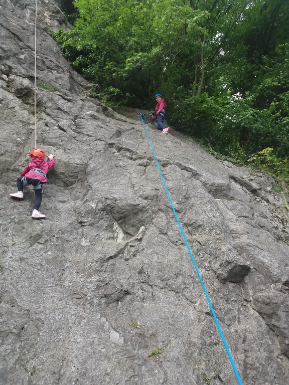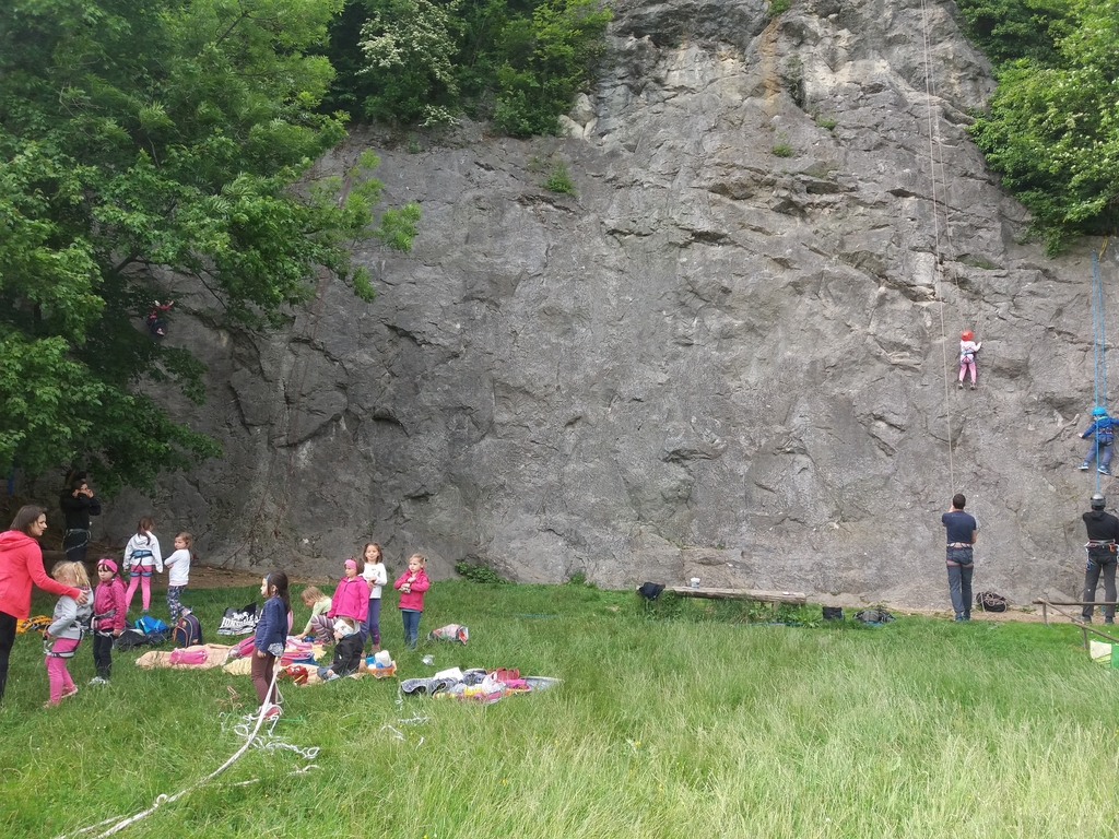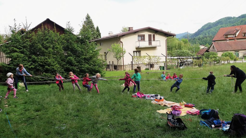 Čas med plezanjem smo zapolnili z vlečenjem vrvi, gumitvistom, s kolebnicami, z raziskovanjem …