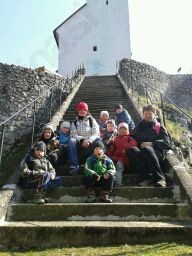 Še gasilska slika na stopnicah pod cerkvijo, potem pa spust v dolino. Sonce nas je prijetno grelo, ko smo se vračali proti vrtcu, kjer so nas že čakali starši.