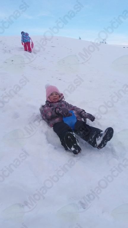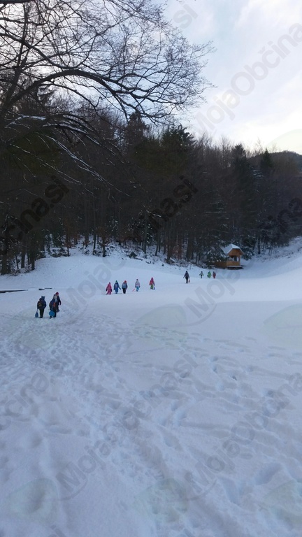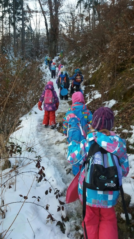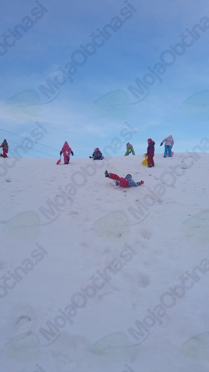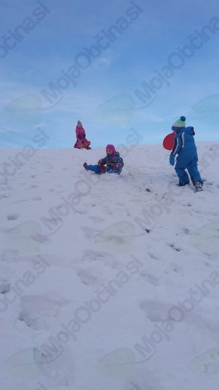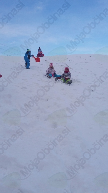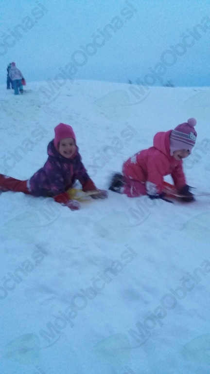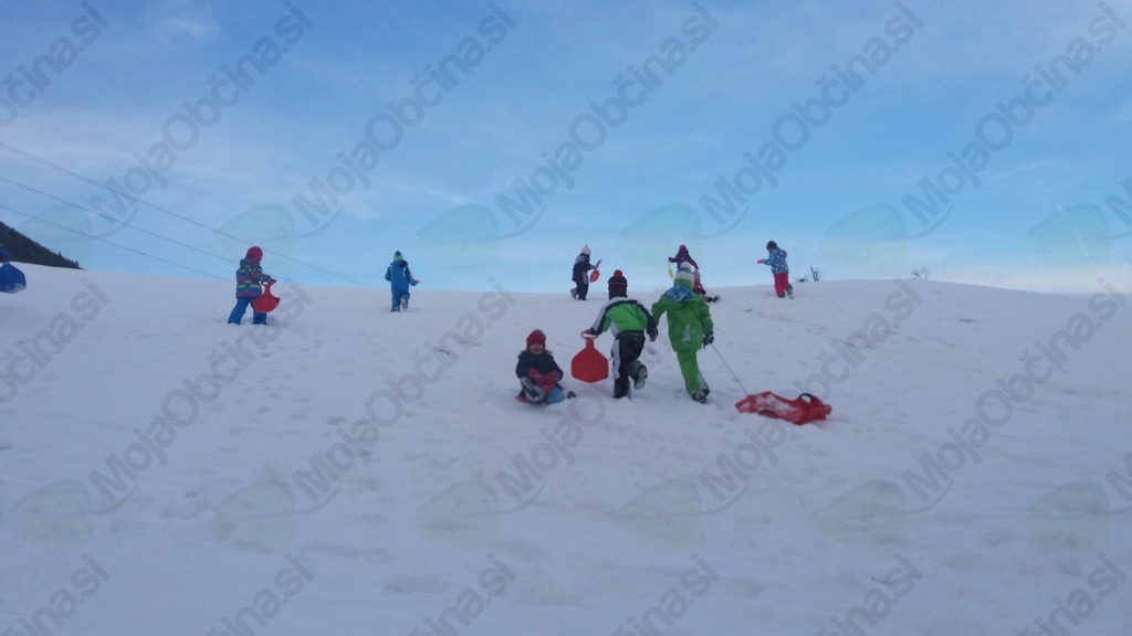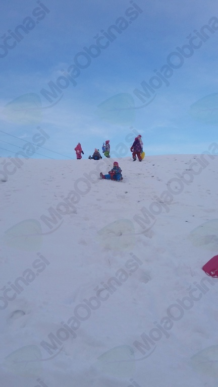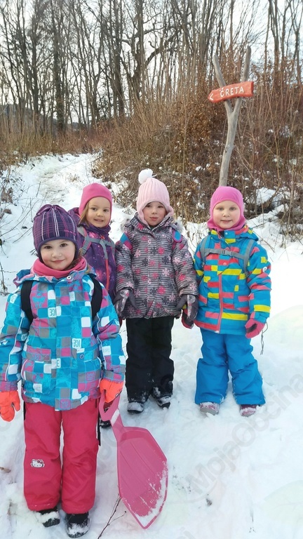 Bilo je lepo sončno popoldne, ko smo se z nahrbtniki, polnimi hrane in vročega čaja, ter seveda lopatkami odpravili proti Brišam. Šli smo mimo plezalne stene po markirani poti, ki vodi na Čreto. Namenili smo se proti hišici, kjer prirejajo smučarske skoke. Tam nas je pričakalo zasneženo pobočje, kjer smo si najprej naredili proge za spuščanje, nato pa tekmovali med seboj, se prevračali, kotalili, iskali nove izzive. Uživali smo vsi, tako otroci kot tudi mentorici. Vmes smo se malo okrepčali, nato pa nadaljevali z norčijami na snegu, dokler se ni začelo mračiti.