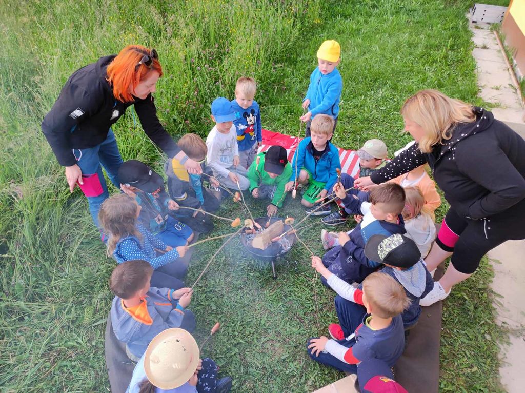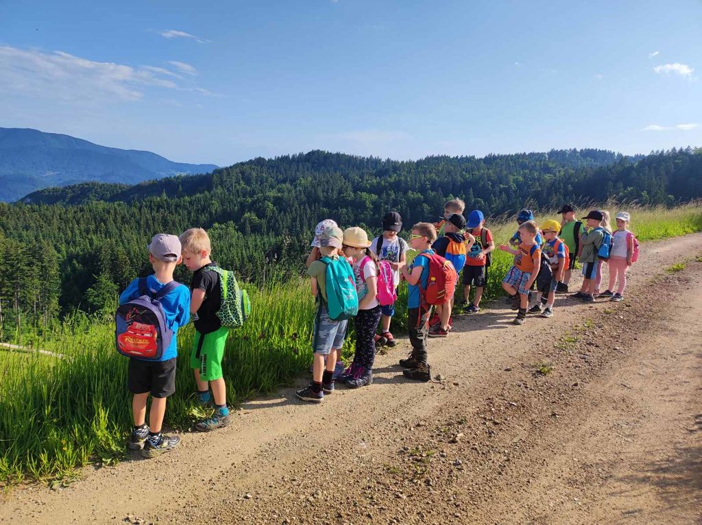 Z avtomobili smo se odpeljali do Petelinka, se poslovili od staršev in se naprej peš odpravili proti planinski koči. Med rahlim vzponom smo bili pozorni na zanimivosti ob poti, iskali smo markacije in se pogovarjali o planinskem bontonu. Razposajeni smo prispeli v kočo, kjer nas je prijazna oskrbnica Ana pričakala z domačim napitkom iz zdravilnih zelišč in slastnimi makaroni. Po zgodnji večerji smo ob koči s skupnimi močmi zakurili ogenj, ob ognju prepevali pesmi, pekli jabolka in hrenovke. Pred spanjem smo odšli še na kratek nočni pohod z lučkami. Noč ima svojo moč. Razvijali smo domišljijo, opazovali sence, poslušali glasove živali …