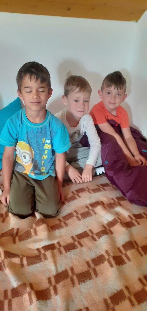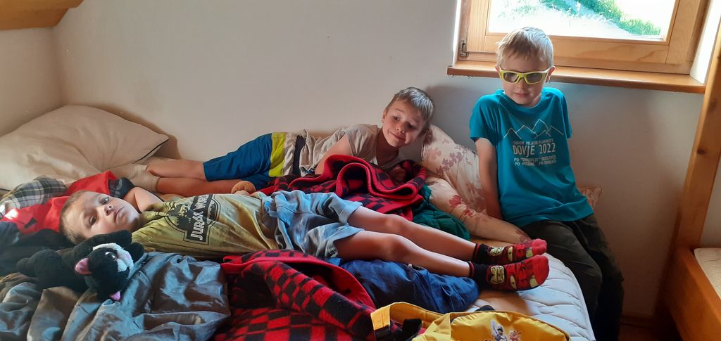 Po dolgem in razburljivem dnevu smo kar popadali v posteljo. Noč je bila mirna. Zbudili smo se v hladno jutro. Po zajtrku smo v planinski dnevnik odtisnili še zadnjo štampiljko. Sledila je slavnostna podelitev planinskih značk. Pred prihodom staršev smo raziskovali okolico planinske koče. Odšli smo na obisk na kmetijo Remic, kjer smo si ogledali domače živali ter se posladkali z domačim sokom in pecivom.