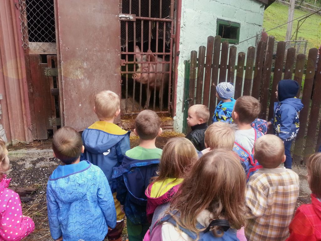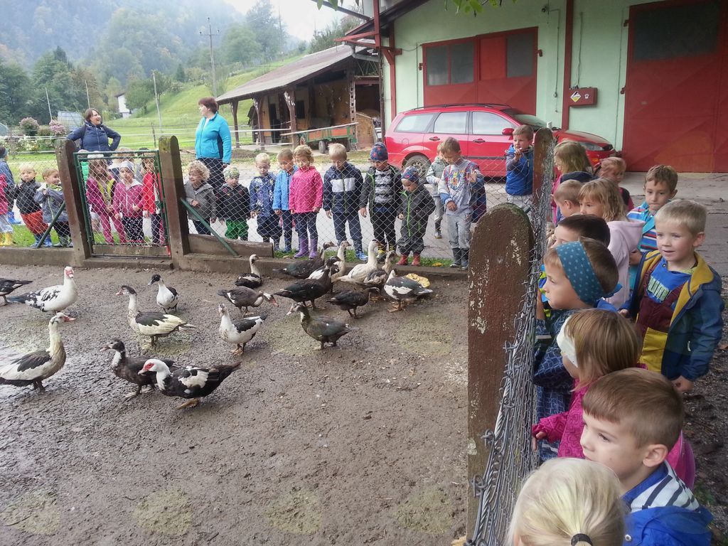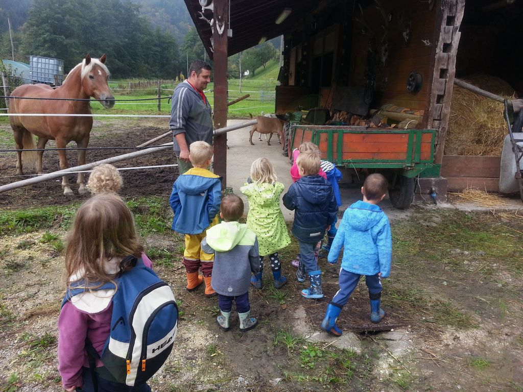 Ogledali smo si kmetijo Konrad, kjer so nas kljub nenapovedanemu obisku zelo lepo sprejeli in nam pokazali race, gosi, pujsa, konje in koze. Pot smo nadaljevali mimo zapuščenega mlina ter naredili velik krog skozi Prapreče. Otroci so zelo dobri opazovalci, zato smo našli kar nekaj pravih gob – dežnikaric, ki smo jih nato odnesli v vrtec. Pot je bila za prvi izlet in za različno stare otroke ravno prav zahtevna, pestra in prijetna. Vsi smo uživali v hoji, naravi in druženju.