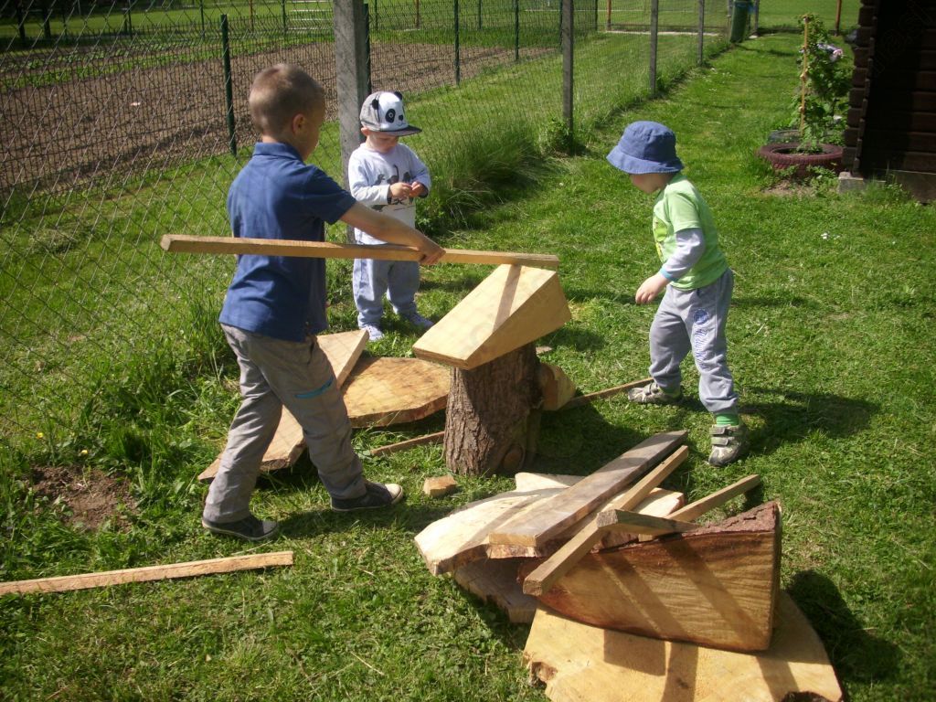 Pri strokovnih delavkah se je porodila zamisel o popestritvi igral na igrišču in kar nekaj nas je pripeljalo leseni material (deske, kole, krajše in daljše hlode in podobno). Ti materiali nudijo otrokom možnost za razvoj domišljijske igre in gibalnih spretnosti. Otroci materiale zlagajo, si delajo iz njih poligone, se ustvarjalno igrajo (npr. pošto, policijsko postajo, sončno elektrarno …). V času komercializacije in obilice igrač so taki materiali postali že prava alternativa in v vrtcu Vransko pripisujemo temu velik pomen.