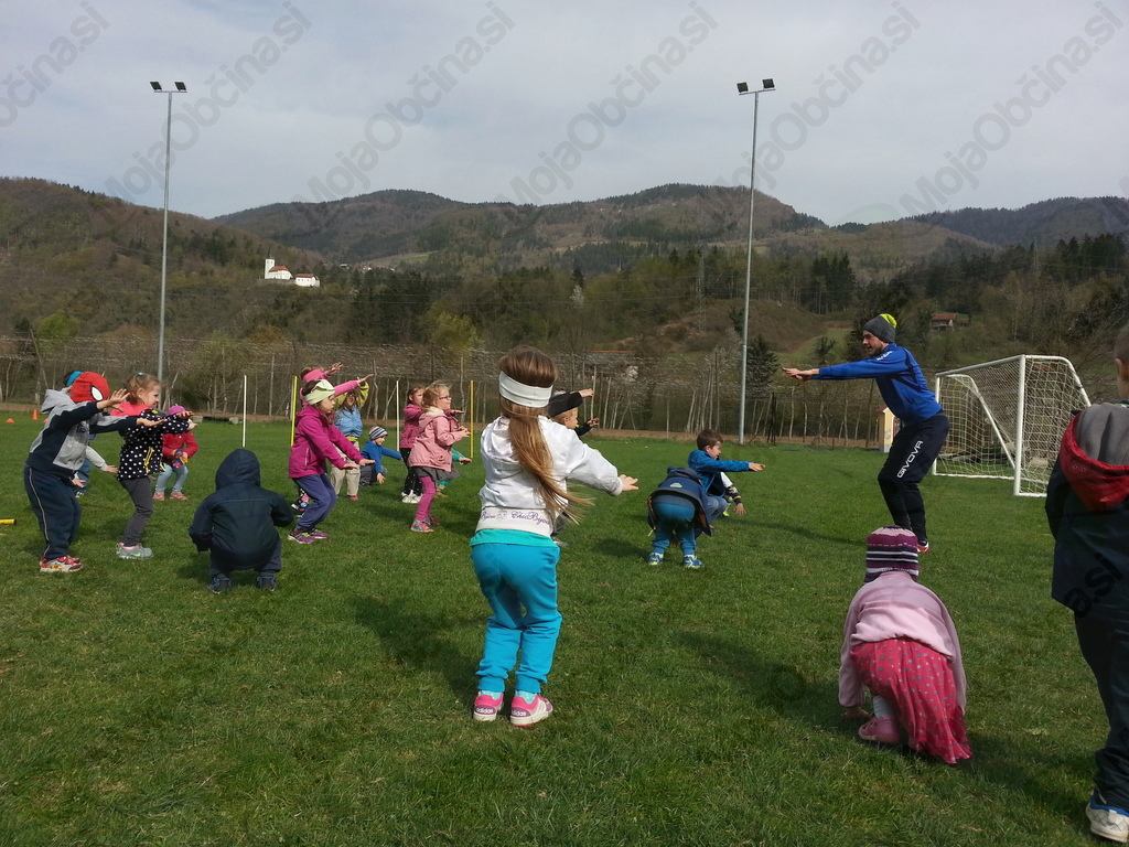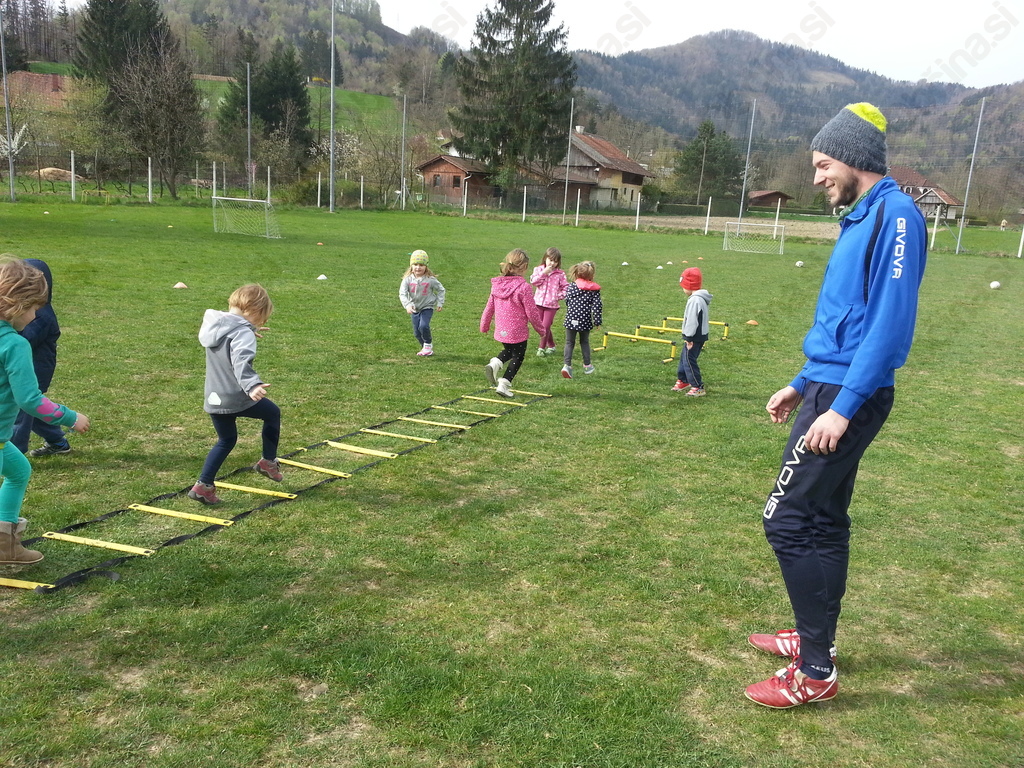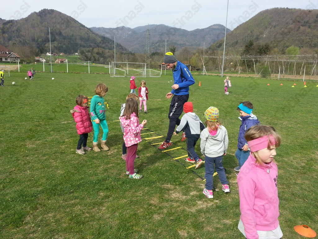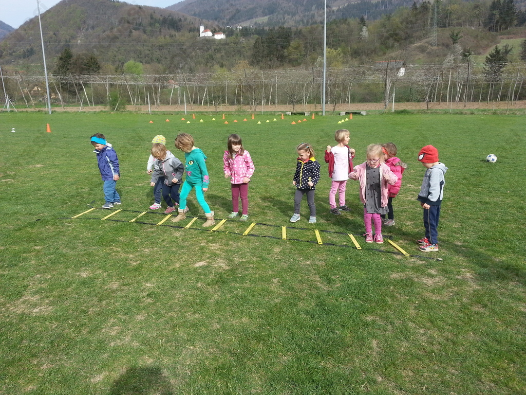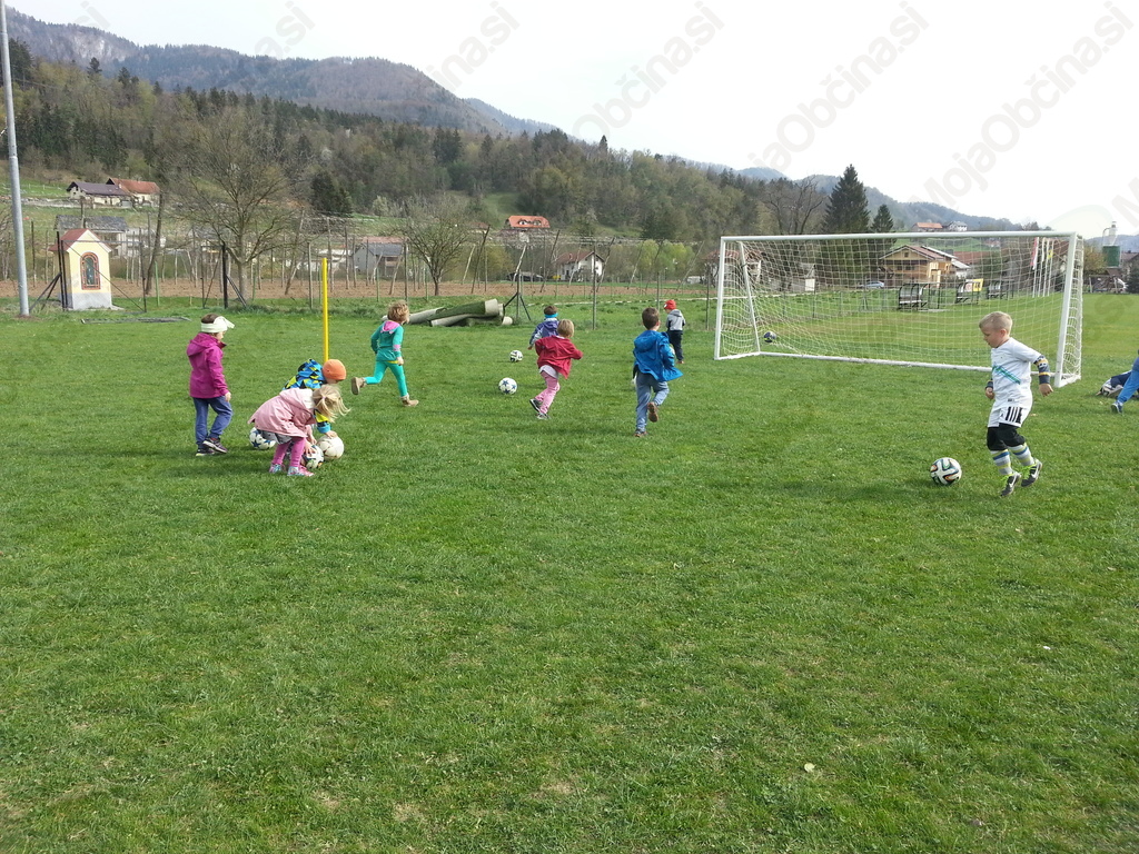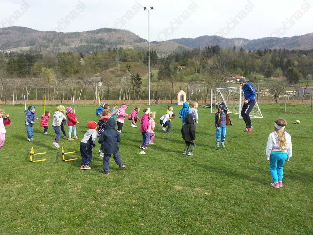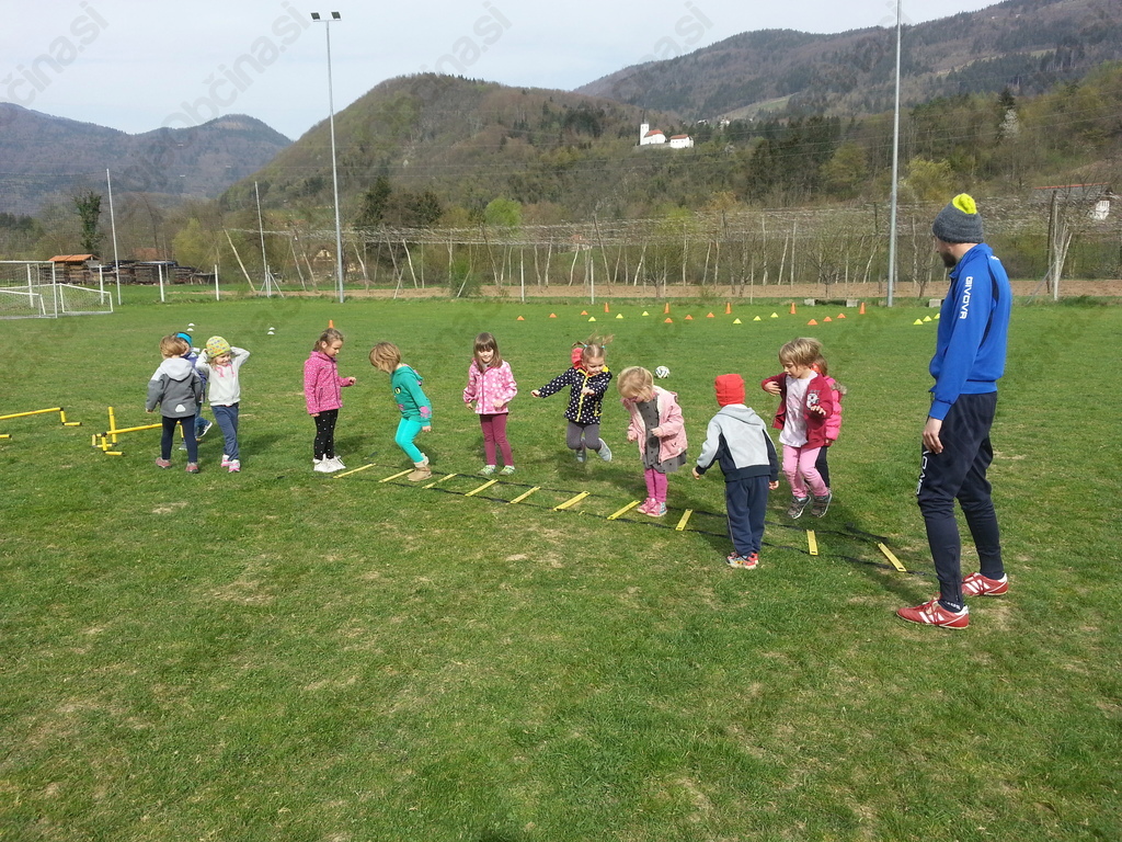 Nogometni klub Vransko je v sredinem dopoldnevu za otroke vrtca Vransko, skupino 3-5 let in 4-6 let, pripravil nogometni poligon, nas razgibal in otrokom predstavil nekaj osnov nogometa. Tako smo se v prvih minutah pošteno ogreli, se lotili premagovanja ovir, vodili žogo med stožci, si podajali in streljali na gol, se pomerili v tekmi in zabili nekaj poštenih golov.