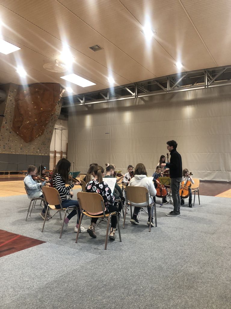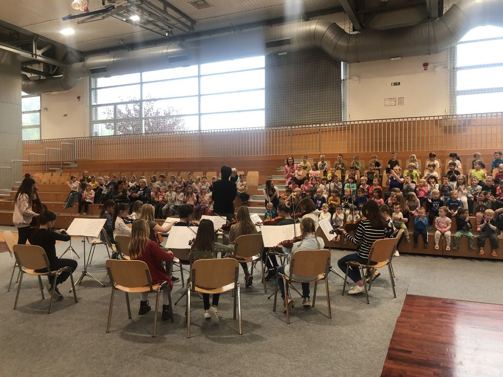 V petek, 22. 4. 2022, so nas obiskali učenci Glasbene šole Risto Savin Žalec. Pripravili so nam pravi mali koncert. Godalni orkester se nam je predstavil z violino, violončelom in kontrabasom, g. Slakan, dirigent, pa nam je glasbila še posebej poimenoval in predstavil.