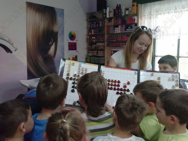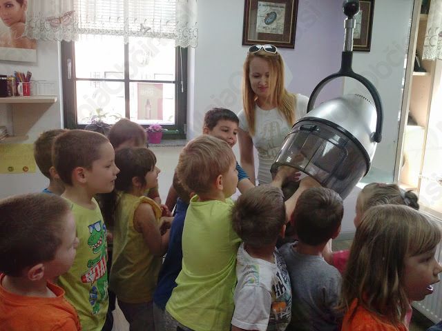 V maju smo na povabilo mamice dečka iz naše skupine obiskali frizerski salon na Vranskem. Ga. Branka nas je prijazno sprejela in predstavila svoj poklic. Pokazala nam je pripomočke, ki jih uporablja pri svojem poklicu. Vsakemu otroku je naredila frizuro in s tem otroke zelo razveselila. Salon smo si ogledali starejši skupini, ½ 5-6 let in 5-6 let. Za drugačno preživeto dopoldne se zahvaljujemo ge. Branki.