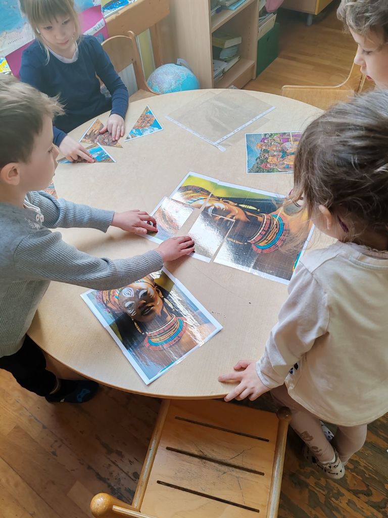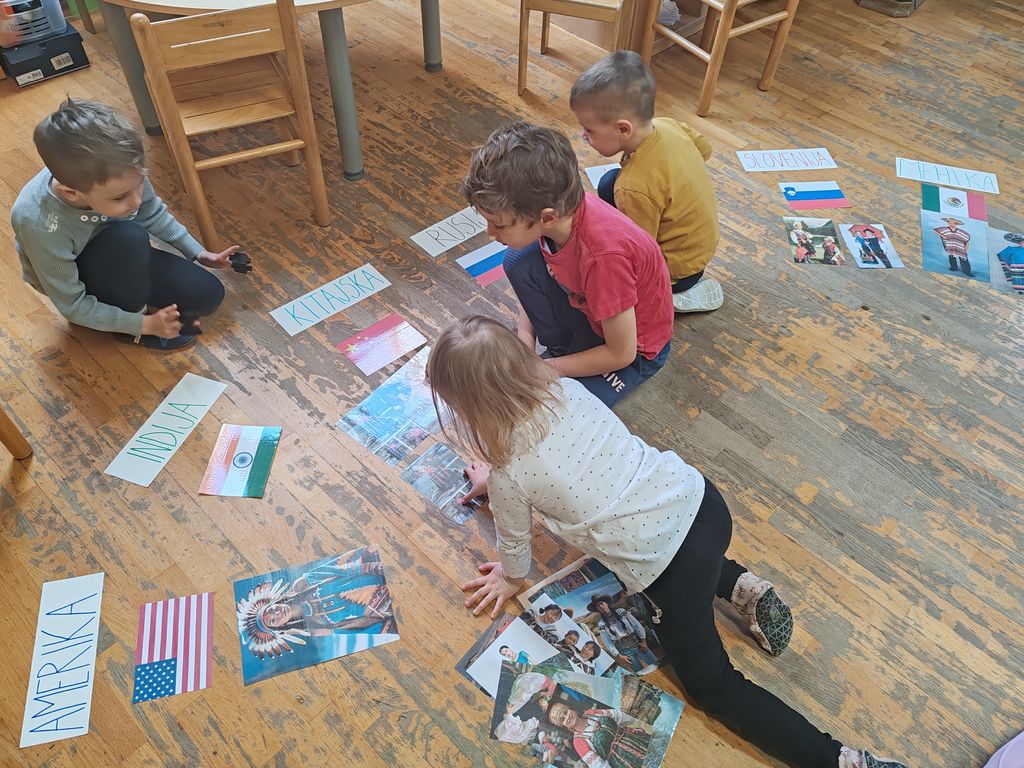 Skozi obogatitvene dejavnosti smo raziskovali kontinente, države sveta, se posvečali tradicionalnim oblačilom, spoznavali različne maske po svetu, živali, izvedli kulturni dan …