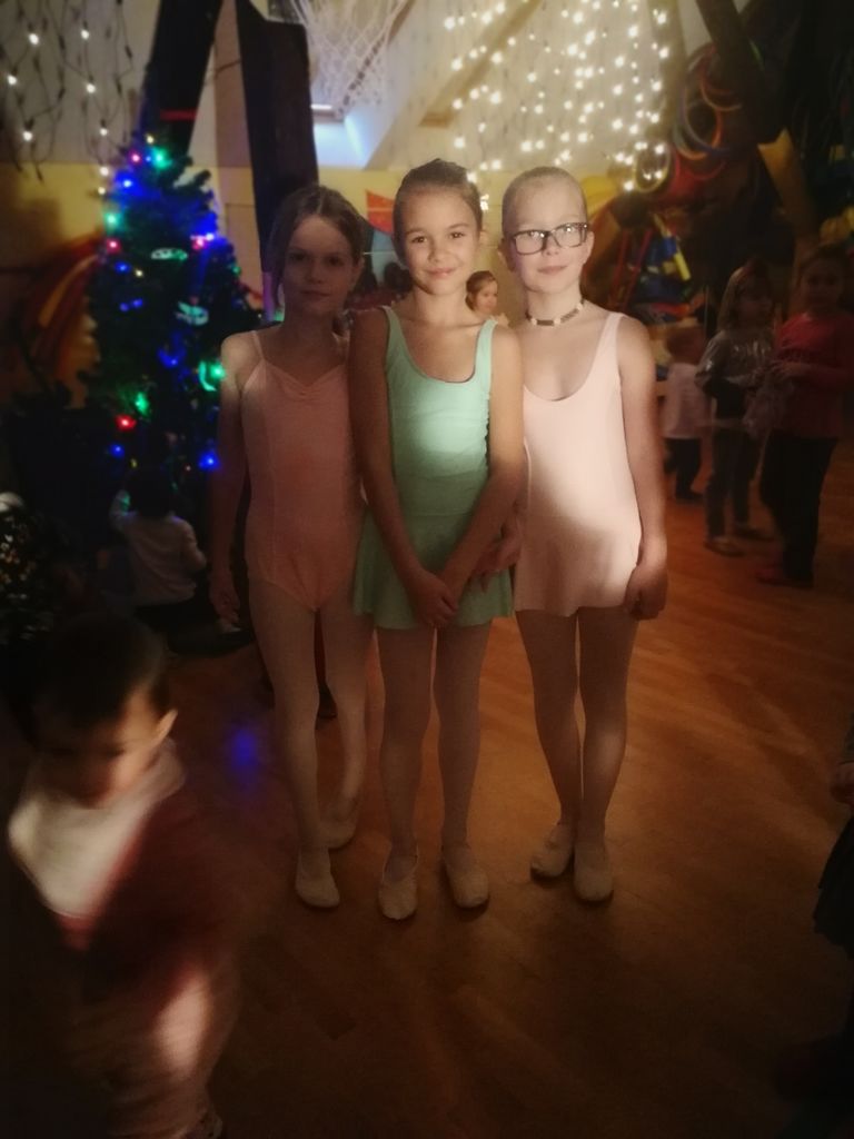 V decembru smo se tako mlajša kot starejša skupina z nekaj plesi predstavili drugim otrokom vrtca. Obiskale pa so nas tri plesalke baleta iz OŠ Vransko: Laura Marolt Dolinšek, Marisa Kos in Ula Hudovernik, ki so nam s predstavitvijo plesa balet popestrile mesec december. Seveda smo se v baletu preizkusili tudi vsi plesni škratki.