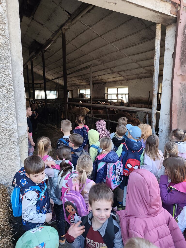 Skupaj smo nato odšli na kmetijo Rjavc v Prekopi, kjer so nas prijazno sprejeli Špela, Rok in gospa Jelka. Razkazali so nam kmetijo in nam predstavili živali, ki tam živijo. Špela in Rok sta se v vlogi mladih vodičev odlično odrezala. Otrokom sta predstavila kužke, muce, purane, bike, koze, ovce in konje. Otroci so z velikim zanimanjem poslušali in z veseljem opazovali živali od blizu.