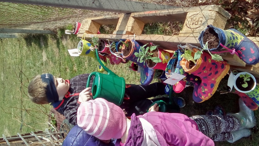 Tako smo 16. 3. 2017 zavihali rokave in zasadili Mini eko vrt vrtca Vransko, ki je malo drugačen. Prinašali smo gumijaste škornje, ki so odslužili svoj namen, jih popestrili z akrilnimi barvami in v njih zasadili nekaj zelišč: timijan, drobnjak, pelin, rožmarin, žajbelj, česen in pa seveda paradižnik, papriko ter solato. V malo večje škornje smo posejali korenček, por in andske jagode. Za zdaj, smo naš vrtiček odnesli v vrtec, ko se bo zrak ogrel, pa bomo naše pridelke presadili v grede, ki že čakajo na pridne ročice. Imeli smo veliko dela, zato smo zavihali rokave in delo opravili v enem dnevu. In … trud je poplačan. Na natečaju za vrtce in šole, ki smo se ga udeležili, smo z Mini eko vrtom vrtca Vransko zmagali in osvojili nagrado - paket vrtnega orodja in ogled predstave Pametno strašilo. Bravo mi!