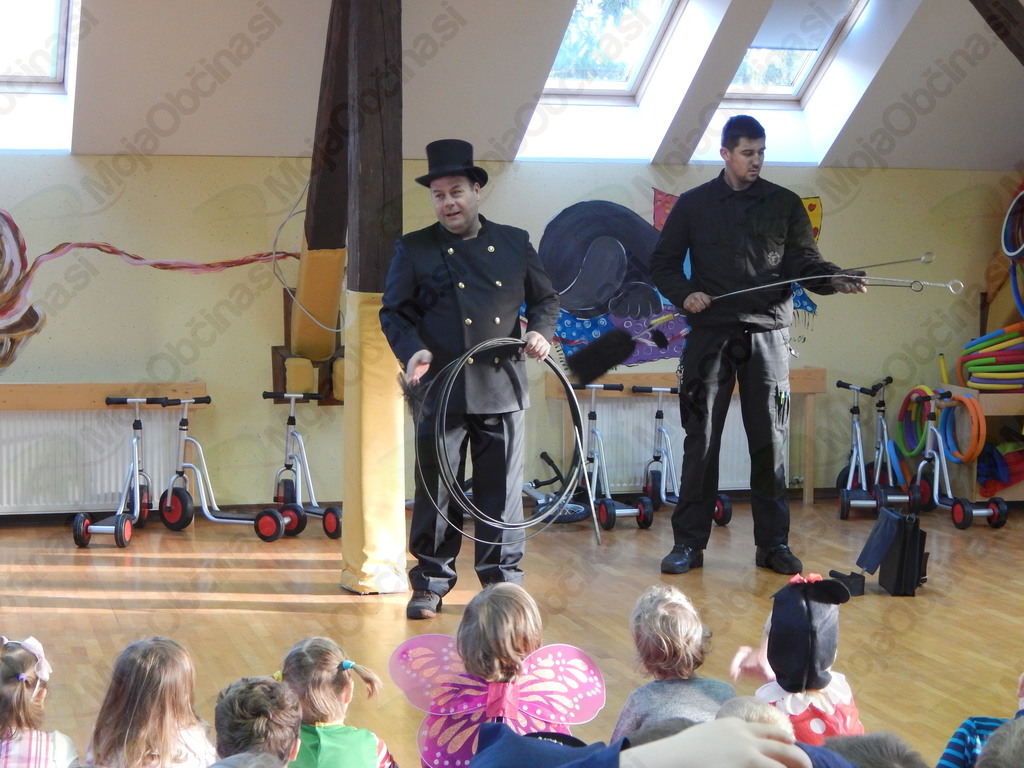 Tudi v letošnjem šolskem letu smo nestrpno pričakovali obisk pustnih mask in norčij. Še preden smo smuknili v različne pustne maske in odplesali ples v maskah v našem vrtcu, smo se o samem pustu veliko pogovarjali, si izdelali različne pustne pripomočke in maske ter poskrbeli za pustno podobo našega vrtca. Skozi ves teden smo se oblačili v različne pustne kostume. V pustnem tednu nas je obiskalo gledališče KU-KUC in nam zaigralo predstavo Tri kepice prometa. Obiskala pa sta nas tudi čisto prava dimnikarja, nam predstavila svoj poklic ter nam pokazala dimnikarske pripomočke. Tako je marsikdo dobil idejo za povorko pustnega karnevala, ki smo se ga udeležili na pustno soboto. Na pustni torek smo razveselili oskrbovance zavoda SV. Rafaela ter jim polepšali pustno dopoldne s pesmicami ter plesom. Rajanje smo nadaljevali v telovadnici, kjer so pustne šeme s plesom mogoče pregnale zimo.