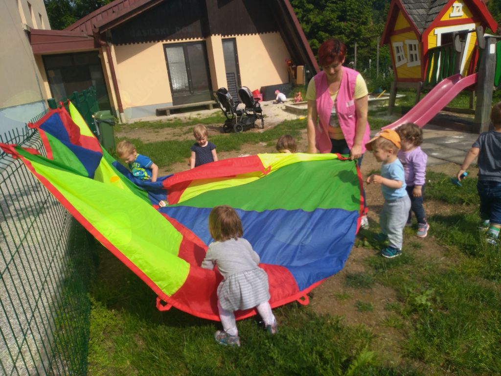 V vrtcu se zavedamo pomena gibalne dejavnosti otrok, saj nam današnji življenjski slog in prevelika uporaba »ekranov« gibalno dejavnost omejuje. Gibanje je zelo pomembno za ohranjanje zdravega načina življenja in razvoj otroka na vseh področjih. Otroci v predšolskem obdobju so najbolj dojemljivi za različne gibalne spodbude in aktivnosti. Ob tem se moramo zavedati, da premalo gibanja v zgodnjem otroštvu kasneje ne moremo nadomestiti. Sposobnosti in motivacijo otrok za gibanje prevečkrat podcenjujemo in si govorimo, da je še »premajhen«. V skupini 1- 2 smo to, da nismo majhni in ne premajhni za različne gibalne podvige, dokazovali skozi vse leto. Zelo pa smo bili veseli pomladanskih dni, ko smo lahko večji del dneva preživeli na prostem. V preteklih tednih smo odšli na različne pohode: Gorica, Terčakov hrib, plezalna stena, križišče za Podgrad. Pot nazaj v vrtec je bila vedno bolj naporna. Gibalne dejavnosti smo si pripravili tudi v igralnici v obliki poligonov različnih oblik in čutne poti, kjer so se materiali menjavali. Na igrišču smo imeli poleg stalnih kotičkov (tobogan, peskovnik, gugalnik) veliko gibalnih izzivov: igra s padalom, vožnja s samokolnico, odbijanje balonov, pokanje milnih mehurčkov, hoja po klopi, skoki, pajkova mreža. V zadnjih dneh, ko so temperature že visoke, pa smo se pozabavali z vodo. Kakršno koli gibanje otroka podpira njegov razvoj, to velja tudi za hojo z bosimi nogami. V pomladnih mesecih smo veliko bosi, v igralnici, v garderobi, bosi gremo na igrišče in tam tudi bosi ostanemo. Otroci pri tem uživajo in krepijo svoje podplate, tako postane naša okolica ena velika, naravna čutna pot.