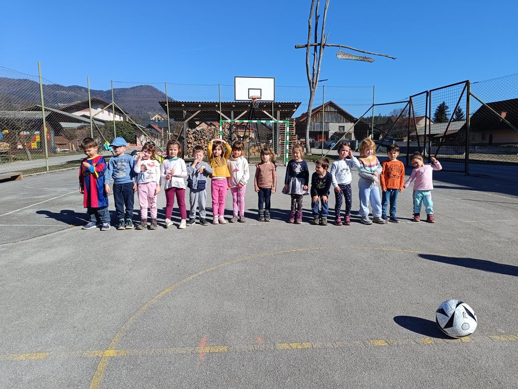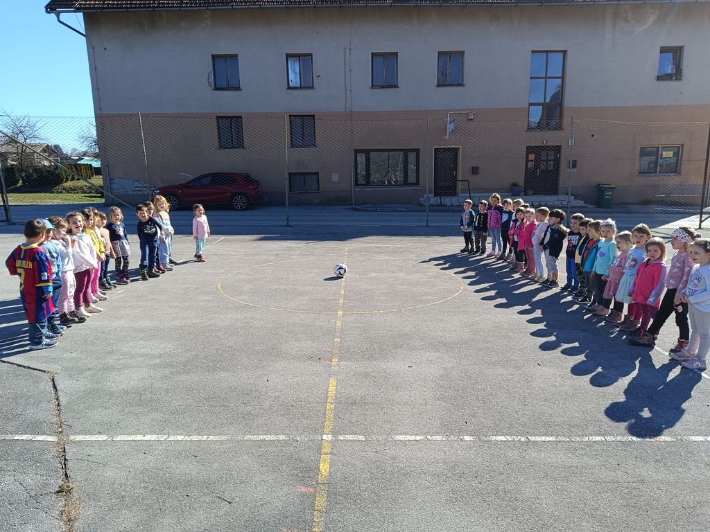 Želeli smo se preizkusiti v pravi nogometni tekmi, zato smo organizirali prijateljsko nogometno tekmo z oddelkom 4–5 iz Vrtca Tabor, s katerim si dopisujemo že od septembra. Do sedaj smo se srečali le preko video klica in povezave zoom, zato smo že nestrpno pričakovali, da se srečamo tudi v živo. Dobili smo se na nogometnem igrišču v Prekopi, do koder smo se s pohodom dobro ogreli. Po začetnem bolj previdnem pozdravu med obema oddelkoma smo z nogometno tekmo uspešno prebili led, na koncu pa se je bilo že kar težko posloviti.