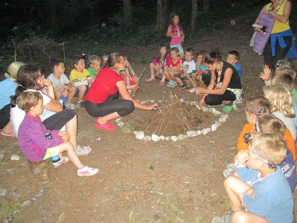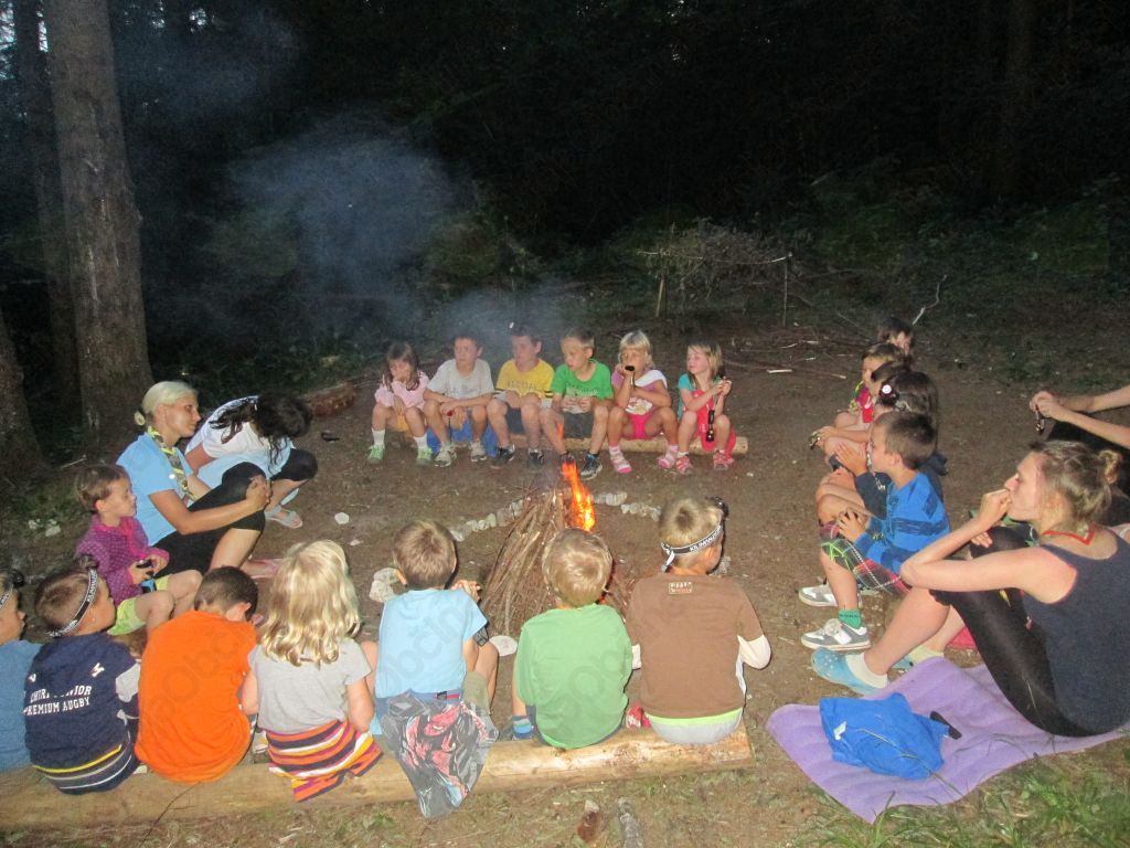 Po večerji smo vsi taborniki radostno zapeli in plesali ob zvokih kitare. Dan smo običajno zaključili s petjem taborniške himne in kurjenjem ognja, ob katerem smo prisluhnili programu, ki so ga sproti pripravljali udeleženci našega tabora.