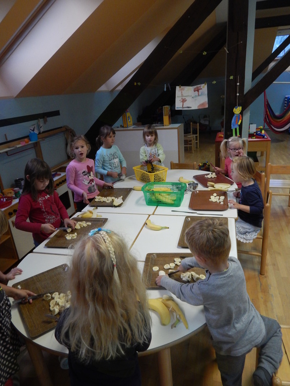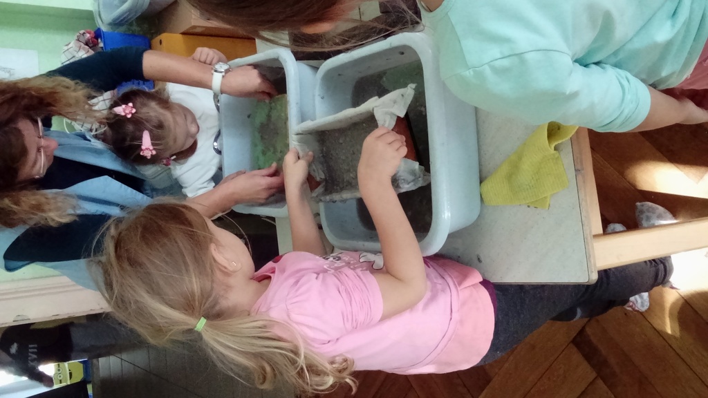 - V sredo smo imeli ekodelavnice, kjer so otroci prehajali med skupinami in pripravili sadne napitke, zelenjavni namaz, izdelali papir, likovno ustvarjali z naravnimi materiali ...