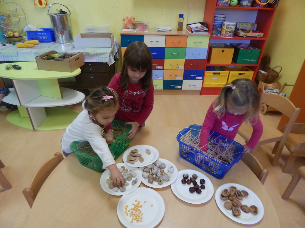 - V torek smo odšli v gozd, kjer smo doživljali naravo z vsemi čutili, prisluhnili zvokom, se skrivali za drevesi, iskali in nabirali jesenske plodove.