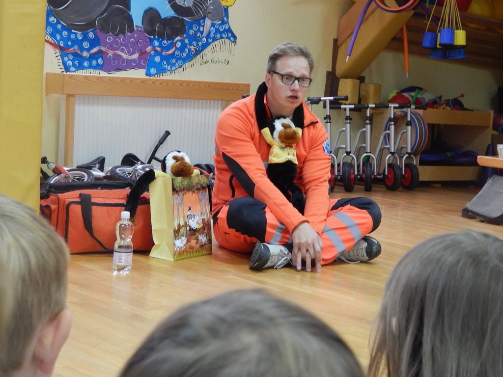 - V četrtek nas je obiskal g. Rok Repas, medicinski brat oz. reševalec iz ZD Žalec, ki je otrokom na njim primeren in simpatičen način, s pomočjo lutk in zgodbice, predstavil poklic, kako poskrbeti v primeru poškodb in tako vsaj deloma pregnal strah pred zdravstvenim osebjem.