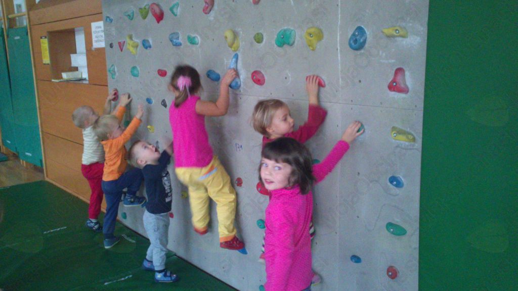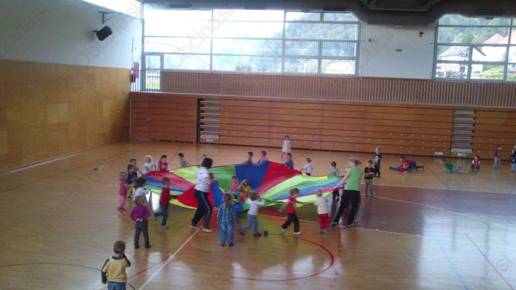 Sredino dopoldne je potekalo v športni dvorani Vrana. Strokovne delavke smo pripravile različne poligone, kjer so otroci razvijali naravne oblike gibanja. Tako so plezali po plezalni steni, vrvi in drogu, metali na koš, vadili različne skoke in spretnosti plazenja ter razvijali ravnotežje. Otroci so bili zelo aktivni in so v gibalnih nalogah vidno uživali. V četrtek smo strokovne delavke vrtca otrokom v večnamenskem prostoru pripravile igro z naslovom » O ženički Govorički«. Ogledali so si jo vsi oddelki vrtca in po vsebini potem ustvarjali z različnimi materiali. Izdelke smo razstavili na hodniku vrtca.