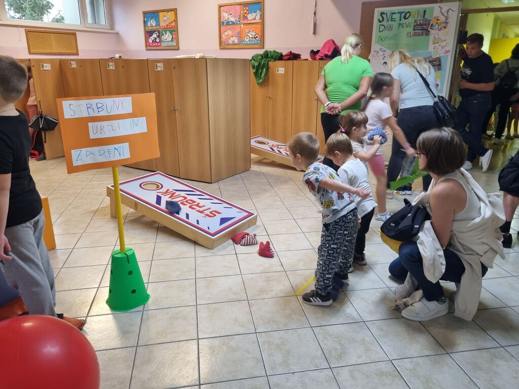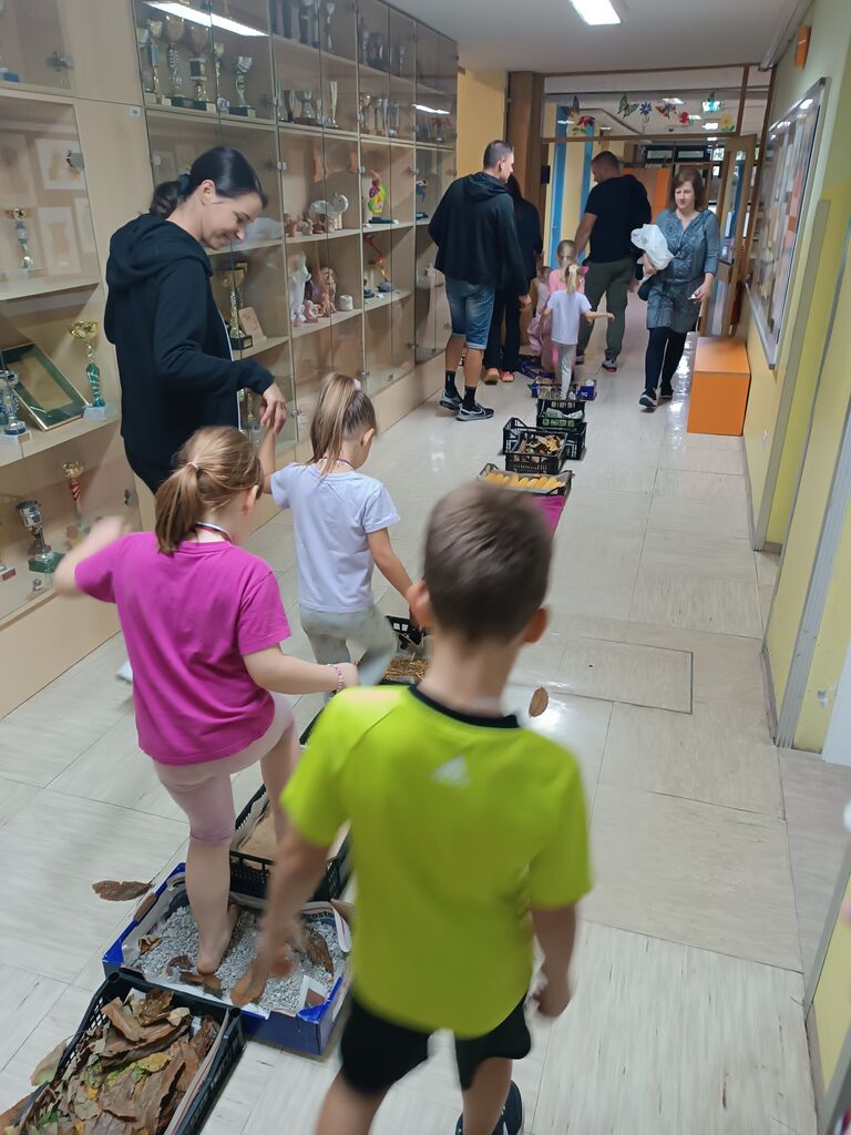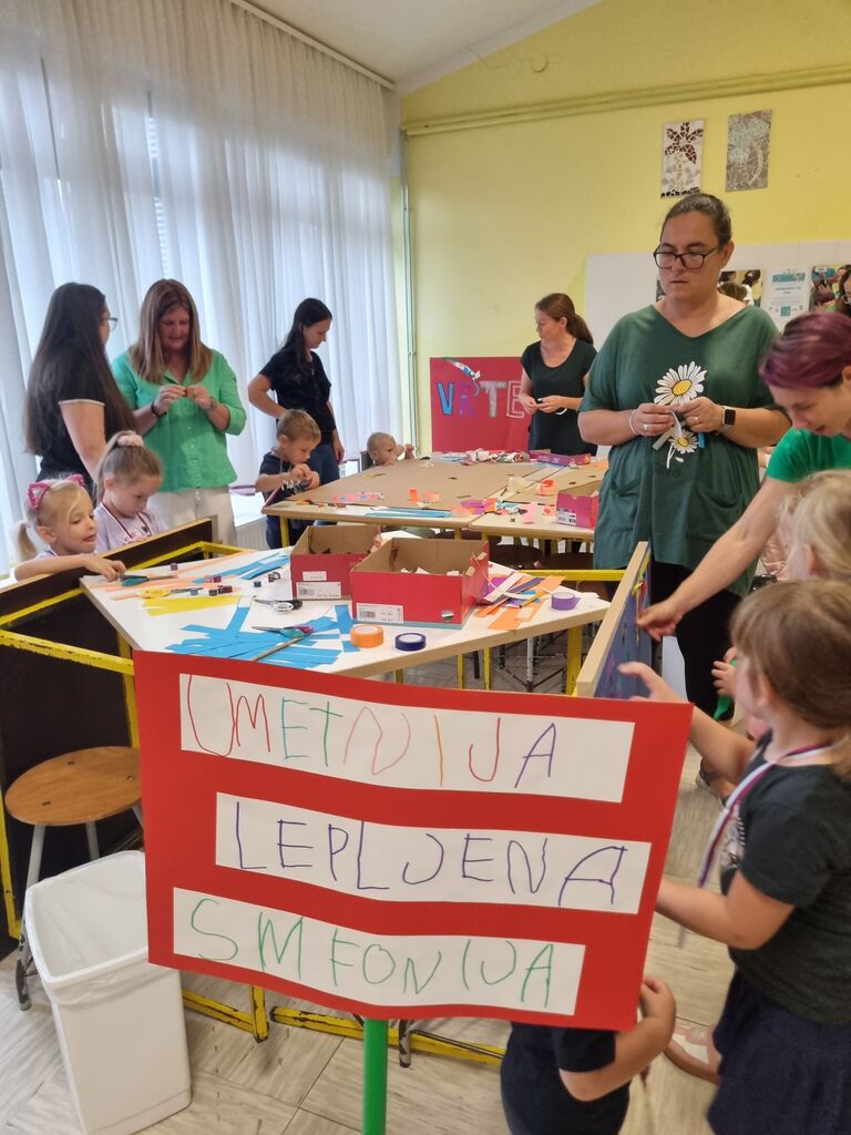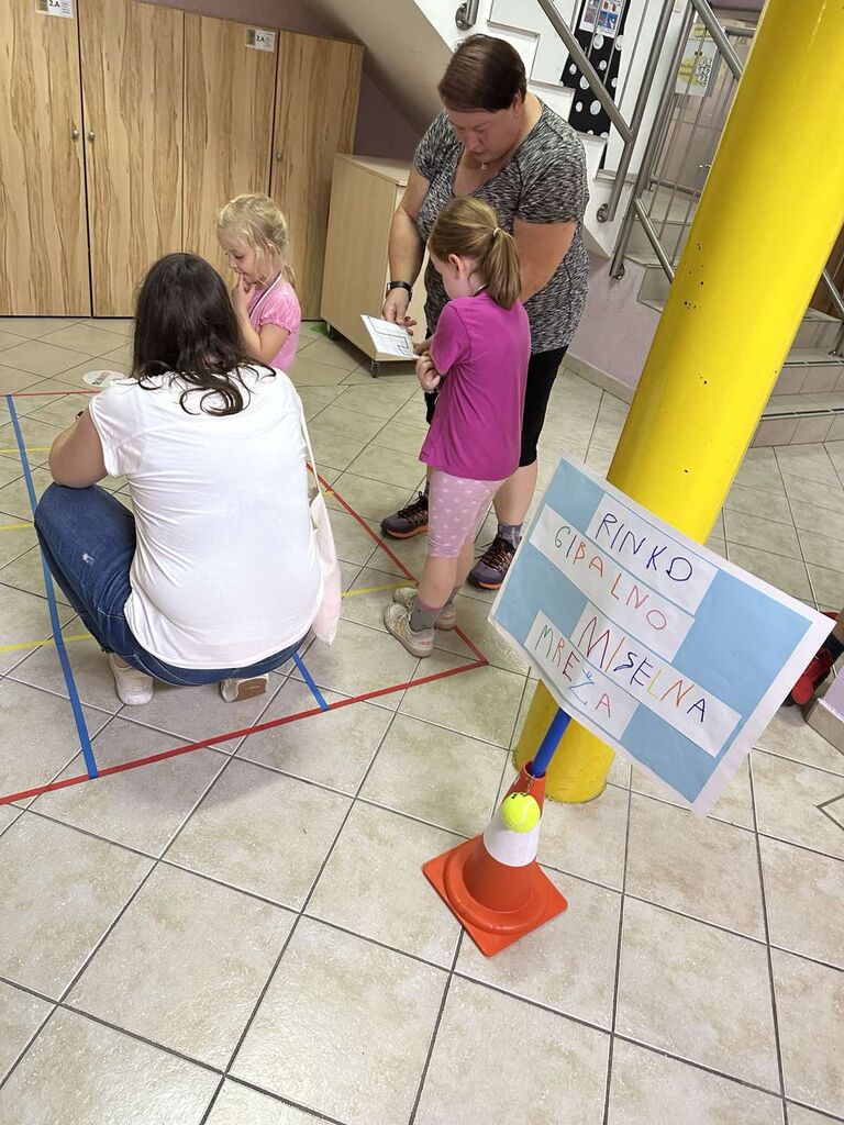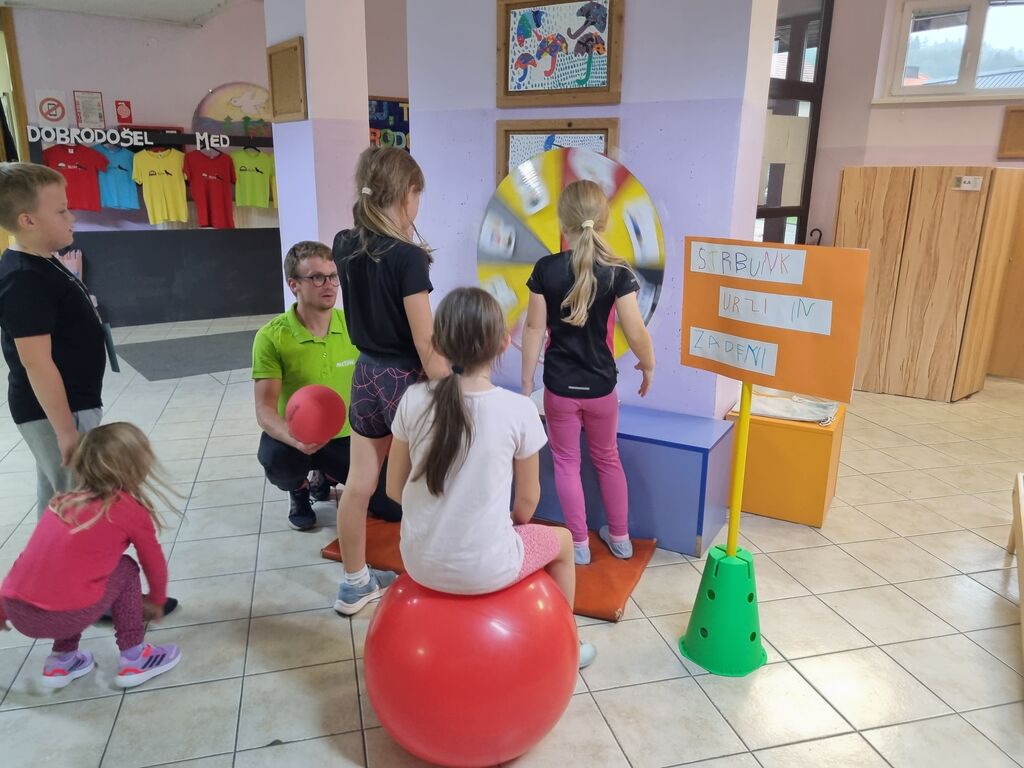 23.9 ob dnevu slovenskega športa se je na Vranskem čutil športni duh in sodelovanje. Poleg uradne otvoritve prenovljenega šolskega igrišča so potekali se Tek za smeh, Veter v laseh, Harmonija generacij, ŽOGARIJA in tudi vrtčevsko jesensko srečanje. Zaradi slabega vremena je vse potekalo v športni dvorani Vransko in po hodnikih in učilnicah šole. Vrtec je pričel s Tekom za smeh. Dobro smo se ogreli s pomočjo atletinj atletskega kluba Kladivar in njihovo trenerko gospo Jolando Čeplak, nato pa ob znaku starta gospe županje pričeli in odtekli krog po športni dvorani. Na cilju so nas pričakale medalje in jabolka. Nato smo si lahko ogledali lokalne ponudnike izdelkov, igrala se je košarka, nogomet, lahko smo plezali po plezalni steni, se družili z jamarji, hodili s "pijanimi" očali, se pomerili v judo. V jedilnici šole in na hodniku pa smo v vrtcu pripravili zelo zanimivo čutno pot, ugibanje s tipanjem skritih stvari v škatli, igro Štrbunk, kolo športnih vaj, delavnico Rinko in umetniško delavnico z lepljenjem. Otroci so zelo uživali, prav tako starši pri premagovanju ovir. Kot piše v novem Kurikulumu se gibalni razvoj v predšolskem obdobju pomembno povezuje s spoznavnim, govornim, telesnim, socialnim in čustvenim razvojem. Napredki na posameznem področju pa se med otroki razlikujejo, zato jim je treba omogočiti, da napredujejo po individualni poti (Kurikulum; 2025). In prav to se trudimo v vrtcu Vransko in omogočamo otrokom napredovanje na vseh področjih. Takšni dogodki in prireditve pa k temu le pripomorejo. Kljub slabemu vremenu smo preživeli res lepo popoldne polno športnih izzivov in zanimivosti. Če pa bi bilo še lepo vreme... Morda naslednjič... Hvala vsem za sodelovanje.