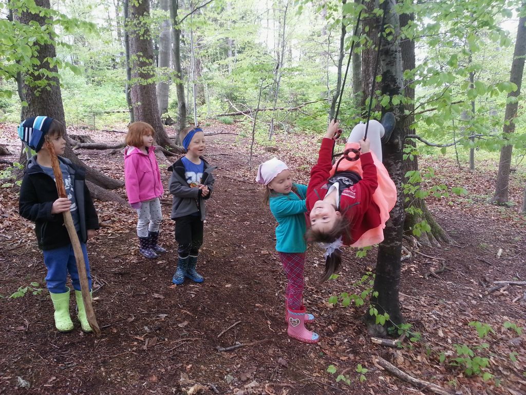 V projektu Mali sonček je ena izmed kategorij, ki jih je potrebno opraviti, TRIM STEZA. Ker na Vranskem nimamo urejene trim steze, smo si jo uredili kar sami. S seboj smo odnesli rekvizite ter liste za označitev posameznih postaj. Otroci so se razdelili in vsak je bil odgovoren za pripravo ene izmed postaj. Najprej smo določili prostor za ogrevanje, nato smo tekli v hrib, kar nas je nekatere kar hitro utrudilo. Sledile so sklece, hoja po vejah različnih debelin, preskakovanje vej, plezanje na drevesa, boksanje v vreče, izmikanje vrečam, tek, sklece, dviganje telesa na vrvi, vožnja samokolnic in podobno. Trim steza je bila zelo zabavna, sploh zato, ker smo si jo uredili sami. Verjemite nam, da pa je bila na trenutke tudi precej naporna.