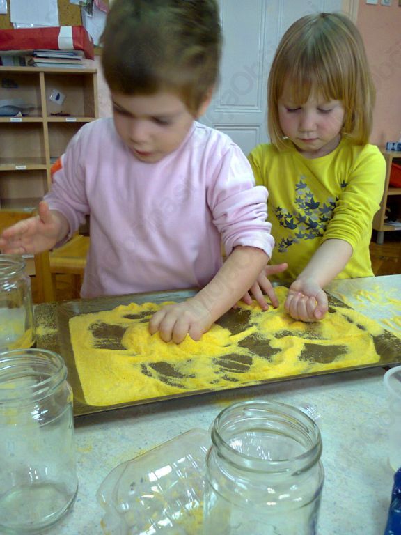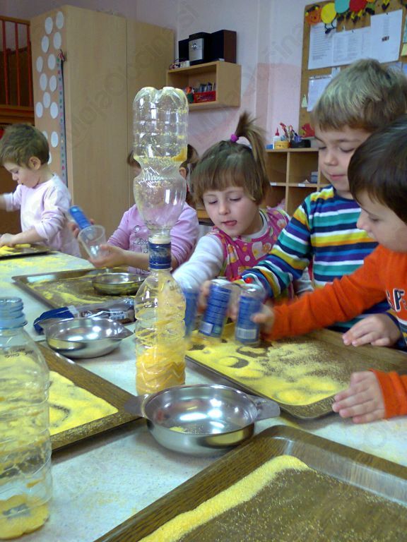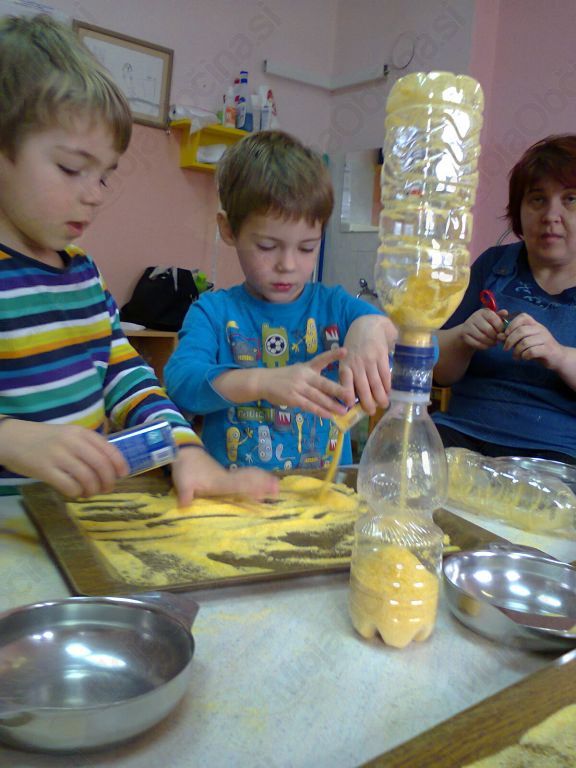 Januarja smo se v skupini 3–4 pogovarjali o urah vseh vrst. Da pa smo ure dobro spoznali, je bilo potrebno tudi kakšno narediti. Lotili smo se izdelave peščene ure, ki je na koncu postala prava zabava. Slike povedo vse. Kljub posuti mizi in risanju po pladnjih so peščene ure nastale in jih še vedno vsak dan pridno opazujemo in tudi uporabljamo.