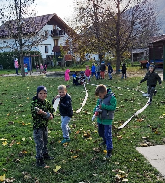 Strokovne delavke vrtca Vransko smo v mesecu požarne varnosti otrokom pripravile številne aktivnosti, ob katerih so delo gasilcev ponotranjali na najrazličnejše načine. Na vadbeni uri v športni dvorani so premagovali najrazličnejše ovire, preskakovali »jarke«, plezali po vrveh, plezalni steni in lestvah ter prenašali bremena kot pravi gasilci. Izvedli smo poskusno evakuacijo na ravni vrtca, ob kateri smo se v celoti rešili iz stavbe v 2 minutah in 43 sekundah. Na cicipohod smo se odpravili po gasilskih topografskih znakih in iskali zaklad, ki je za vsak oddelek predstavljal delček oblačil in opreme gasilca, ki smo ga naslednji dan na obogatitvenem dnevu tudi oblekli. Ob tem so starejši oddelki obiskali gasilski dom na Tešovi in gasilski muzej v Prekopi. Poleg oblačenja v gasilska oblačila, rokovanja z gasilsko opremo, premagovanja ovir, nošenja štafete na poligonu in gašenja navideznega požara s pravimi C-cevmi smo v goste povabili predstavnike gasilcev bolničarjev. To so bili: Aljaž iz PGD Prekopa-Čeplje-Stopnik ter Martina in Mojca iz PGD Motnik, ki so nam prikazali postopke oživljanja in nudenja prve pomoči ob poškodbah, kjer so otroci pokazali veliko čuta za sočloveka in kreativnosti, ko so igrali ponesrečence. Za konec aktivnosti smo si ogledali požarno vajo, kjer so se združila vsa PGD v občini Vransko. Prikazali so nam gašenje začetnega požara s prahom, peno in vodo, priredili ognjeni spektakel z oljem, nam razkazali gasilska vozila in opremo, otroci so se lahko preizkusili v špricanju z brentačami, poslovili pa smo se ob zvokih gasilskih siren in utripajočih luči. Prav je, da se na tem mestu zahvalimo vsem PGD v občini Vransko, še posebna zahvala pa velja poveljniku Tiniju Reberšku, ki nam je nesebično priskočil na pomoč pri izvedbi vseh omenjenih aktivnosti. Hvala vsem.