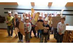 Na pobudo otrok smo raziskovali temo o vitezih. Otroci so od doma prinesli slike in knjige o vitezih. Izdelali smo plakate, informacije iskali v knjigah, opazovali slike, pripovedovali. Otroci vedo, da so vitezi živeli v gradovih. Zanimale so nas še druge stvari (kako so se bojevali, v kaj so bili oblečeni, s čim so se ogrevali, kaj so jedli, kako je potekala pošta, s čim so pisali ...). Izdelovali smo viteške krone, meče, ščite in seveda tudi viteške konje. Pisali smo s peresi in črnilom in ugotovili, da pisanje s peresi ni enostavno. Otroci so se igrali igre po svoji zamisli in se za nekaj časa sami spremenili v viteze. Iz nestrukturiranega materiala so izdelovali grad, se pri tem dogovarjali, sprejemali ideje drug drugega.