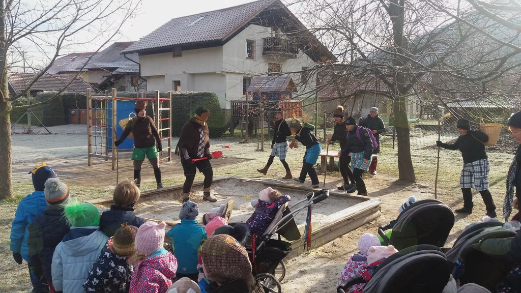 V vrtcu nas je obiskalo 7 Medvedov in Zaljubljena medvedka. Na igrišču se jim je vse umaknilo, kajti odšli so kar počez, na goro - da vidijo kaj je za njo! Šli so v svet …