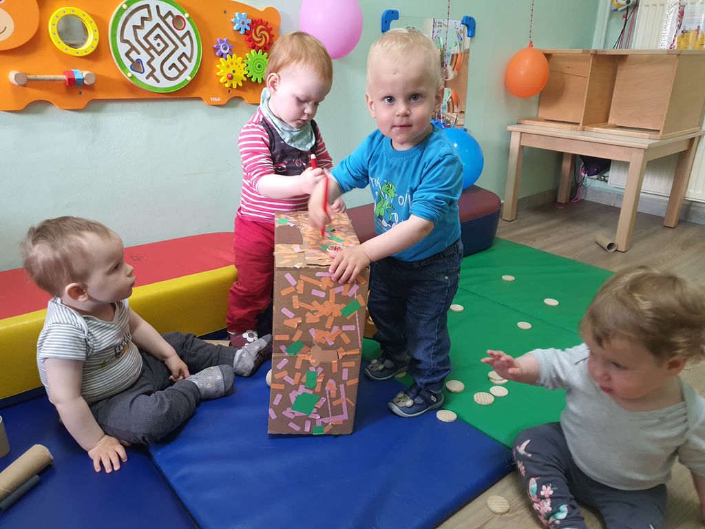 V našem oddelku smo se osredotočili predvsem na recikliranje materialov in izdelavo igrač ter didaktičnih pripomočkov iz odpadnih materialov. Izdelali smo različne ropotuljice, »vtikanke«, vozila … in na ta način gradili pozitiven odnos do narave in okolja, se hkrati zabavali in naučili kaj novega.