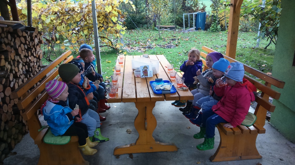 Naš cilj v vrtcu Vransko je, da otroku ponujamo pestre in zanimive dejavnosti in se poleg tega zabavamo in ogromno naučimo. V naši skupini se vedno kaj dogaja in podiramo stereotipe o tem, česa vse ne smemo in  ne zmoremo. Tako smo se tudi v četrtek odločili, da si »privoščimo« zajtrk na prostem. Izžrebali smo, da nas pot vodi do Prapreč. S seboj smo vzeli tudi zajtrk, ki je bil ta dan kruh, sir in topel čaj. Toplo smo se oblekli in obuli ter se odpravili na Cicihribce. Že malce utrujeni in lačni smo prišli do domačije Kondrad, kjer smo si za njihovo mizo zunaj, za kar se jim zahvaljujemo, postregli. Otroci so z navdušenjem jedli in se odžejali s toplim čajem. Ogledali smo si še račke, jih nahranili z ostanki ter odšli še naprej po poti do gozda, kjer smo plezali po podrtem drevesu, opazovali listje in skakali po blatu. Malce utrujeni in blatni smo se odpravili nazaj proti vrtcu, kjer nas je čakalo slastno kosilo, nato pa zaslužen počitek. Pa je minil en pester in zanimiv dan v vrtcu. Naj jih bo čim več!