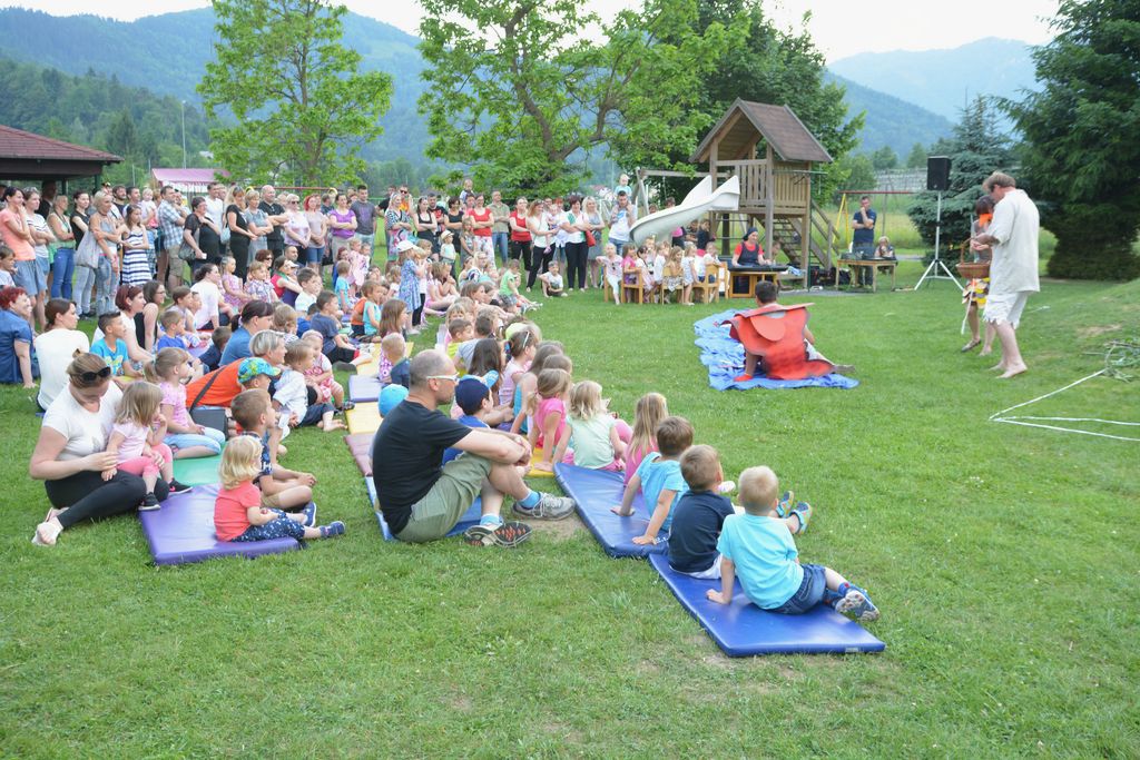 Šolsko leto gre počasi h koncu, zadnji dnevi pa običajno tečejo še hitreje.  V vrtcu nam dnevi hitro minevajo, junij pa je tako čas, ko nekateri otroci že odhajajo na dopuste. Torej je bil zadnji majski dan kot nalašč za zaključno zabavo. Vreme sicer ni kazalo najbolje, a ker naš vrtec stoji pod srečnim soncem, nam je tudi vreme čudežno pripomoglo k izvedbi. Letos so pri izvedbi zaključka izdatno pomagali starši oddelka 5-6 let z go. Jernejo in go. Darjo, saj so za zaključek pripravili igrico Kdo je napravil Vidku srajčico. Otroci so se skupaj s svojimi družinami zelo številčno udeležili srečanja in uživali v zanimivo izvedeni igrici. Po igri je sledilo prijetno druženje, igra na igralih igrišča, klepet. ... in seveda sladkanje s sladoledom, ki ga je prispevala slaščičarna Brglez. To pa še ni vse. Sladkali smo se tudi s krofi, ki nam jih je podarilo Gostinsko podjetje Trojane. Res hvala obema sponzorjema, saj  je bilo po njuni zaslugi naše druženje še prijetnejše.