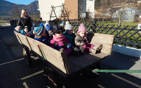 Eden osnovnih ciljev predšolske vzgoje je otrokom vsak dan zagotavljati ponudbo pestrih dejavnosti in vsebin. Takšen prednostni cilj smo si zadali za triletno obdobje tudi v našem vrtcu. Med vsemi dejavnostmi, ki jih izvajamo v vrtcu in na prostem, nas je v tem mesecu najbolj navdušila vožnja z vozom. Voz nam je prijazno posodila ga. Fanika Drolc, za kar smo ji zelo hvaležni. Otroci (2–3 leta) so z veseljem splezali na voz in vožnja se je pričela. Odpeljali smo se do plezalne stene, kjer smo dopoldne preživeli v gozdu, se utrujeni od ustvarjalne igre zopet povzpeli na voz in se odpeljali do vrtca. V mislih pa že kujemo naslednjo dogodivščino …