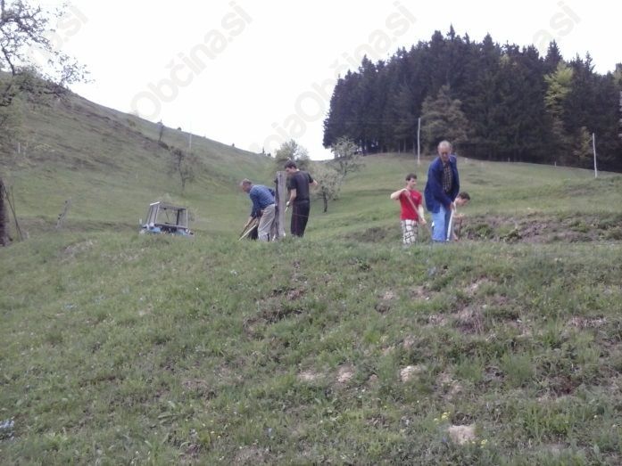 Prvomajski prazniki se še niso končali, ko so se požrtvovalni sosedje Dorija Skoka s Črete skupaj s plezalci odločili, da mu priskočijo na pomoč. Očistiti je bilo potrebno bankine od barake do"holc placa", saj je dolgotrajna zima in obilica snega pustila za sabo posledice. Na bankinah se je zaradi oranja snega naneslo nekaj peska, ki ga je bilo potrebno odstraniti, da se bo živina čez leto lahko z užitkom pasla.