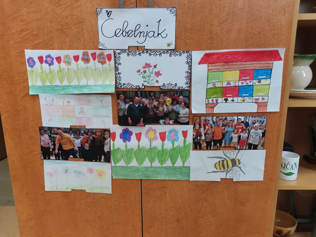 Naredili smo čebelnjak, pred tem pa poslikali panjske končnice. Nekatere smo naredili iz fotografij naših preteklih druženj, da se bodo kot čebele na jesen znali vrniti v panj s pravljicami.