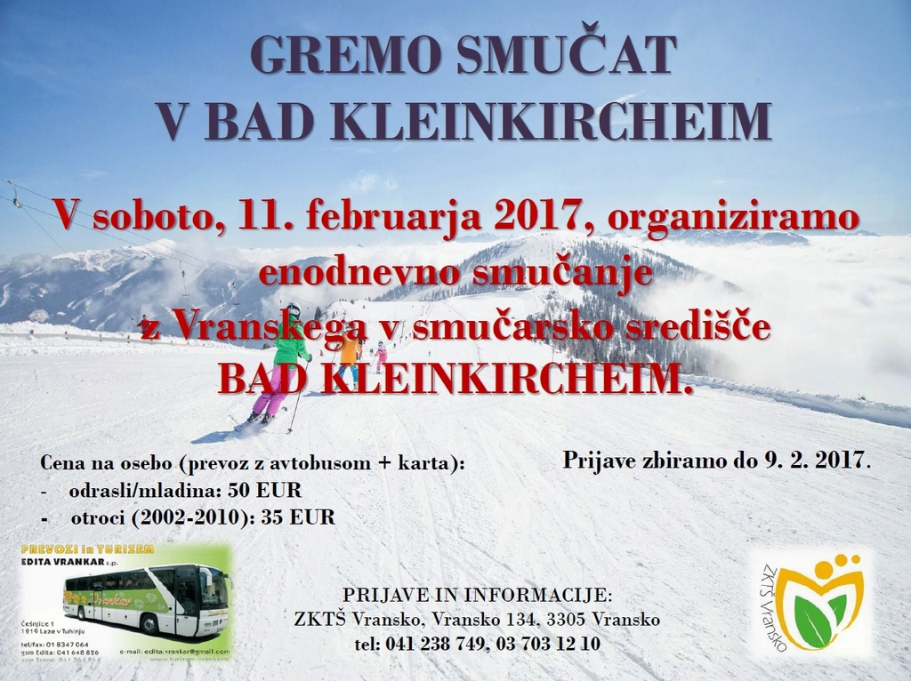 V soboto, 11. februarja 2017, organiziramo enodnevno smučanje
