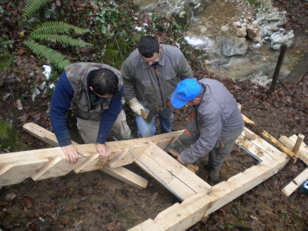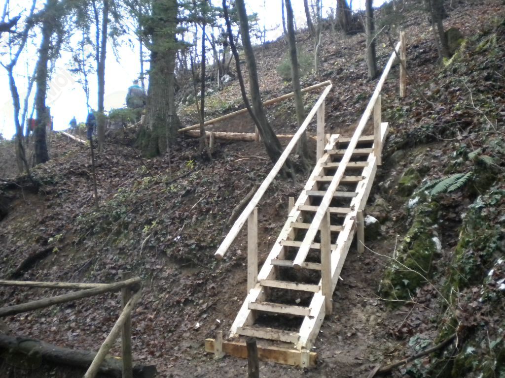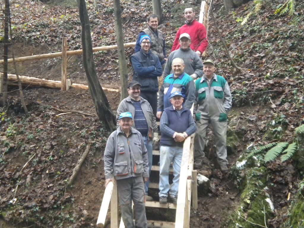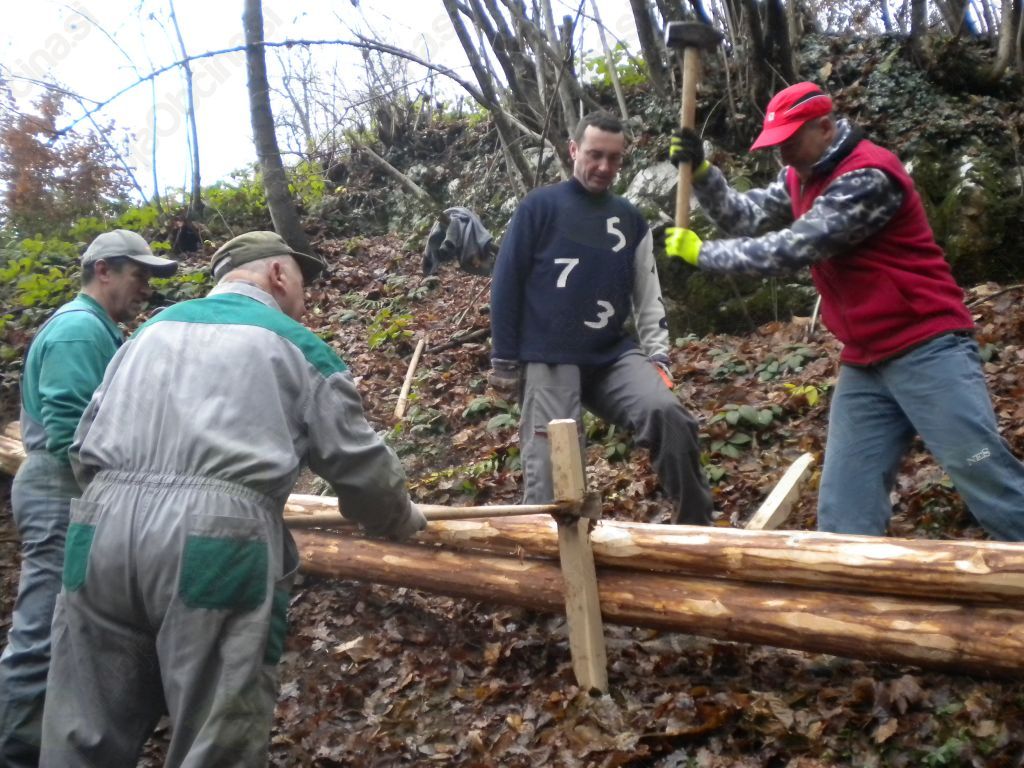 Dela smo se lotili 1. decembra. Deset planincev iz PD Vransko je poprijelo za delo. Potrebno je bilo znositi precej lesa od ceste do "Žlajfe". Nakopali smo stezo in montirali stopnice.